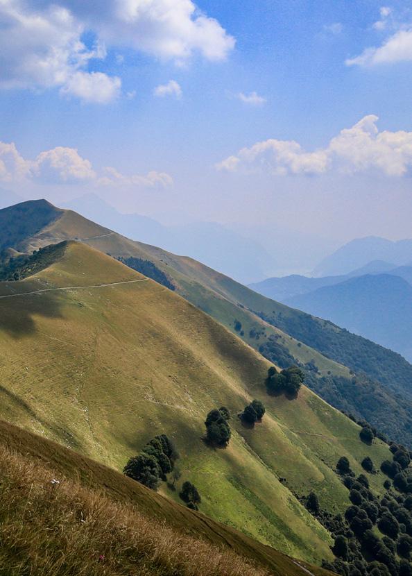 SOMMARIO Mappa 6 Prefazione 8 Presentazione 10 Autore 12 Il lago, i monti e la Storia 14 Il clima 26 La fauna 28 La flora 32 Sicurezza 36 Interpretazione itinerari 44 Ringraziamenti 46 Bibliografia 48 Lettura degli itinerari e legenda 50 Rifugi 52 1. Bisbino da Piazza Santo Stefano .... 56 2. Bisbino da Rovenna 62 3. Monte Colmegnone da Cà Bossi 66 4. Sentèe di Sort da Rovenna ......... 70 5. Moltrasio anello Liscione, Lenno 76 6. La Culman, ritorno da monte di Liscione ...................... 80 7. Salita al monte Colmegnone da Carate 84 8. Via Verde 90 9. Sentiero delle Espressioni 94 10. Anello del Sasso Gordona 100 11. Sasso Gordona dal piano delle Alpi 104 12. Anello di San Zeno da Schignano 110 13. Monte Crocione dalla bolla giro ad anello 114 14. Anello del Generoso da Erbonne 118 15. Generoso da Orimento giro sentiero alto e basso 124 16. Cima Piancaccia giro ad anello 128 17. Monte Sighignola da Lanzo 132 18. Anello Cime Valle Camoggia da Pigra 136 19. Argegno da Pigra su mulattiera 142 20. Greenway 146 21. Anello Sala, Canelva, Corniga, Colonno 150 22. Anello della Val Perlana 156 23. Monte di Tremezzo da Boffalora 160 24. Monte Crocione da Paullo (Menaggio) 164 25. Anello dei monti di Nava da Griante 168 26. Anello monte Sasso San Martino 172 27. Monte Galbiga da Bene Lario 176 28. Giro del lago di Piano 182 29. Alpe Vecchio giro da Cima 186 30. Anello delle frazioni di Valsolda 190 31. Via dei Canti da Dasio 194 32. Anello Sasso di Mont da Dasio 198 33. Monte Boglia da Dasio 202 34. Cima Fiorina da Seghebbia 208 35. Garzirola da Cavargna a S. Lucio 214 36. Pizzo di Gino da Tecchio (S. Nazzaro) 218 37. Cima Pianchette da San Bartolomeo V. C. 222 38. La via del Ferro 226 39. Alpe di Rozzo Marnotto da Male’ ... 232 40. Anello alpeggi dell’alta Val Sanagra 238 41. Giro del monte Pidaggia 242 42. Anello della Val Menaggio ......... 248 43. Anello del Rogolone 252 44. Anello del Sass Curbè 256 45. Anello la Canua, Sant’Amate 260 46. Anello del monte Grona 264 47. Salita al monte Bregagno 268 48. Antica via Regina da Menaggio 274 49. Anello di San Domenico da Breglia 280 50. Anello di San Bernardo da Musso 248 51. Giro valle Albano, valle Morobbia 288 52. Anello della Marmontana 292 53. Bivacco Zeb 296 54. Sass Camoscè 300 55. Anello del Sasso Pelo 306 56. Anello di Dongo 310 57. Capanna Como 316 58. Sasso Canale 320 59. Berlinghera da San Bartolomeo 326 60. San Fedelino da Dascio 332 4
