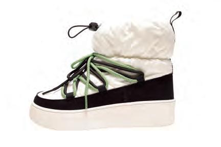 Protezione e performance guidano le soluzioni in fatto di materiali e design di queste calzature. Scarponcini tecnici con suole che garantiscono grip e tenuta su qualsiasi terreno abbinate a tomaie in tessuti ad alta tenacità. Stivali in gomma e scarponi dopo sci adatti anche alla città grazie a dettagli glam come inserti in pelliccia o colori metallizzati.
