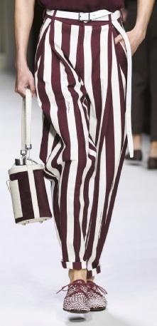 Il pensiero seguente si è spostato proprio sul concetto di coppia, di abbinamento creativo che troviamo espresso a livello di persone anche nel duo Dolce&Gabbana, sempre sulla cresta dell’onda anche nelle sfilate presentate nelle prossime pagine. Ma il concetto di avvicinare realtà diverse si può applicare anche ad altri ambiti, come accade quando accosti un rugbista ad abiti alla moda (Maxime Mbandà), oppure designer stranieri di calzature e borse (Alan Scott e Alena Ettea) al Made in Italy.