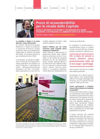 Prove di ecosostenibilità per le strade della Capitale QUASI 3 MILIONI DI CITTADINI E L’ESTENSIONE PIÙ AMPIA D’EUROPA; L’ATTENZIONE ALL’AMBIENTE METTE IN MOTO ROMA Intervista a Marco Visconti, Assessore all’Ambiente di Roma