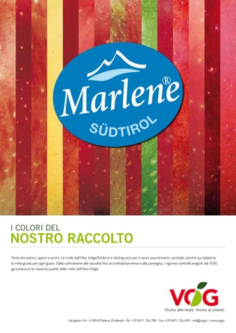 nostro raccolto Tante sfumature, sapori e aromi. Le mele dell’Alto Adige/Südtirol si distinguono per il vasto assortimento varietale, perché qui abbiamo la mela giusta per ogni gusto. Dalla coltivazione alla raccolta fino al confezionamento e alla consegna, i rigorosi controlli eseguiti dal VOG garantiscono la massima qualità delle mele dell’Alto Adige.