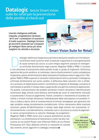 Datalogic ridefinisce l’esperienza all’interno del punto vendita con l’introduzione di Smart vision suite for retail. Creata per supportare la nuova generazione di casse sempre più sicure, la suite integra algoritmi avanzati di intelligenza artificiale direttamente negli scanner Magellan 9600i e 9900i. Il risultato è una soluzione di prevenzione delle perdite fluida, in grado di migliorare l’efficienza operativa del punto vendita e, al contempo, ridurre drasticamente il costo complessivo di gestione, grazie all’eliminazione della necessità di hardware esterni aggiuntivi. I Magellan 9600i e 9900i superano il concetto tradizionale di lettura, portando l’intelligenza artificiale direttamente nel punto vendita. A differenza delle soluzioni che si affidano a processi di elaborazione esterni, l’architettura integrata di Datalogic consente di contrastare le perdite in tempo reale, supportando una gamma evoluta di applicazioni. Tra queste, riconoscimento dei prodotti alimentari freschi attraverso l’identificazione automatica degli articoli sulla bilancia, eliminando gli errori di inserimento manuale e accelerando il flusso di pagamento. Inoltre, consente il rilevamento di scambio etichette e articoli multipli attraverso l’individuazione delle discrepanze tra prodotto fisico e codice a barre, oltre al riconoscimento di articoli sovrapposti, per garantire che ogni prodotto venga correttamente contabilizzato. Infine, rilevamento delle mancate scansioni, grazie all’identificazione in tempo reale degli articoli non scansionati, intenzionalmente o accidentalmente, mettendo così in sicurezza la corsia di pagamento senza comprometterne la velocità. Datalogic ha progettato i Magellan 9600i e 9900i come vere e proprie piattaforme ad alte prestazioni. La combinazione di telecamere a colori ad alta risoluzione, di uno switch Power-over-Ethernet (PoE) e di una Tensor Processing Unit (Tpu) dedicata elimina la necessità di costose Gpu esterne, server aggiuntivi e cablaggi complessi.n