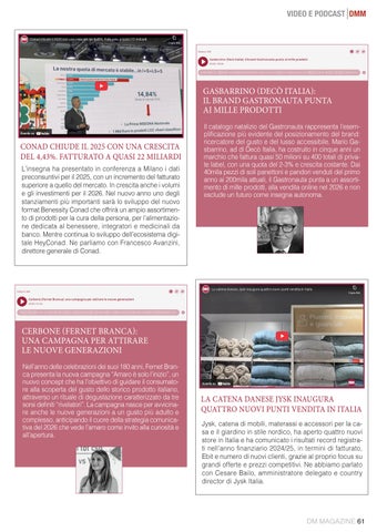 CONAD CHIUDE IL 2025 CON UNA CRESCITA DEL 4,43%. FATTURATO A QUASI 22 MILIARDI L’insegna ha presentato in conferenza a Milano i dati preconsuntivi per il 2025, con un incremento del fatturato superiore a quello del mercato. In crescita anche i volumi e gli investimenti per il 2026. Nel nuovo anno uno degli stanziamenti più importanti sarà lo sviluppo del nuovo format Benessity Conad che offrirà un ampio assortimento di prodotti per la cura della persona, per l’alimentazione dedicata al benessere, integratori e medicinali da banco. Mentre continua lo sviluppo dell’ecosistema digitale HeyConad. Ne parliamo con Francesco Avanzini, direttore generale di Conad.