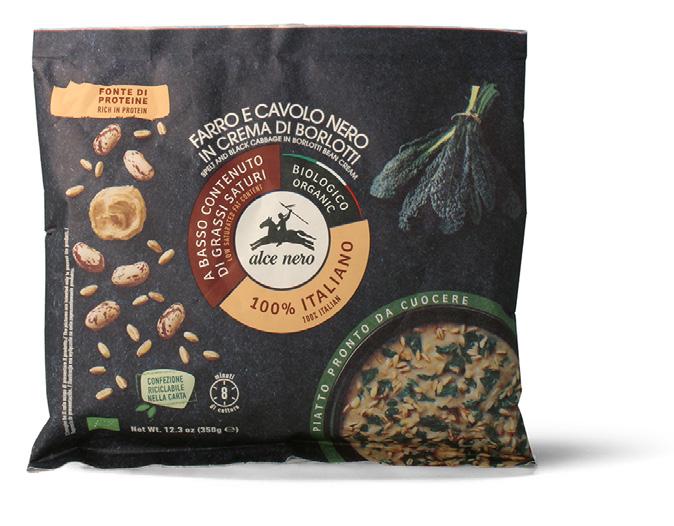 ALCENERO.COM I PIATTI PROTEICI ALCE NERO SONO 100% BIOLOGICI E VEGETALI E PREPARATI CON INGREDIENTI ITALIANI. DISPONIBILI NEL BANCO DEI SURGELATI SCAFFALE ZUPPE E MINESTRONI 2 REFERENZE ORZO E SPINACI IN CREMA DI CECI FARRO E CAVOLO NERO IN CREMA DI BORLOTTI PRATICI DA PREPARARE PRONTI IN 8 MINUTI FORMATO DA 350GR RICETTE INNOVATIVE ALCE NERO INNOVA NEL FROZEN PACK SOSTENIBILE RICICLABILE NELLA CARTA 100% BIOLOGICI A BASSO CONTENUTO DI GRASSI SATURI FONTE DI PROTEINE PACK RICICLABILE NELLA CARTA