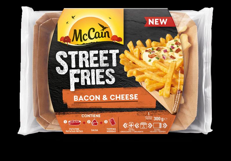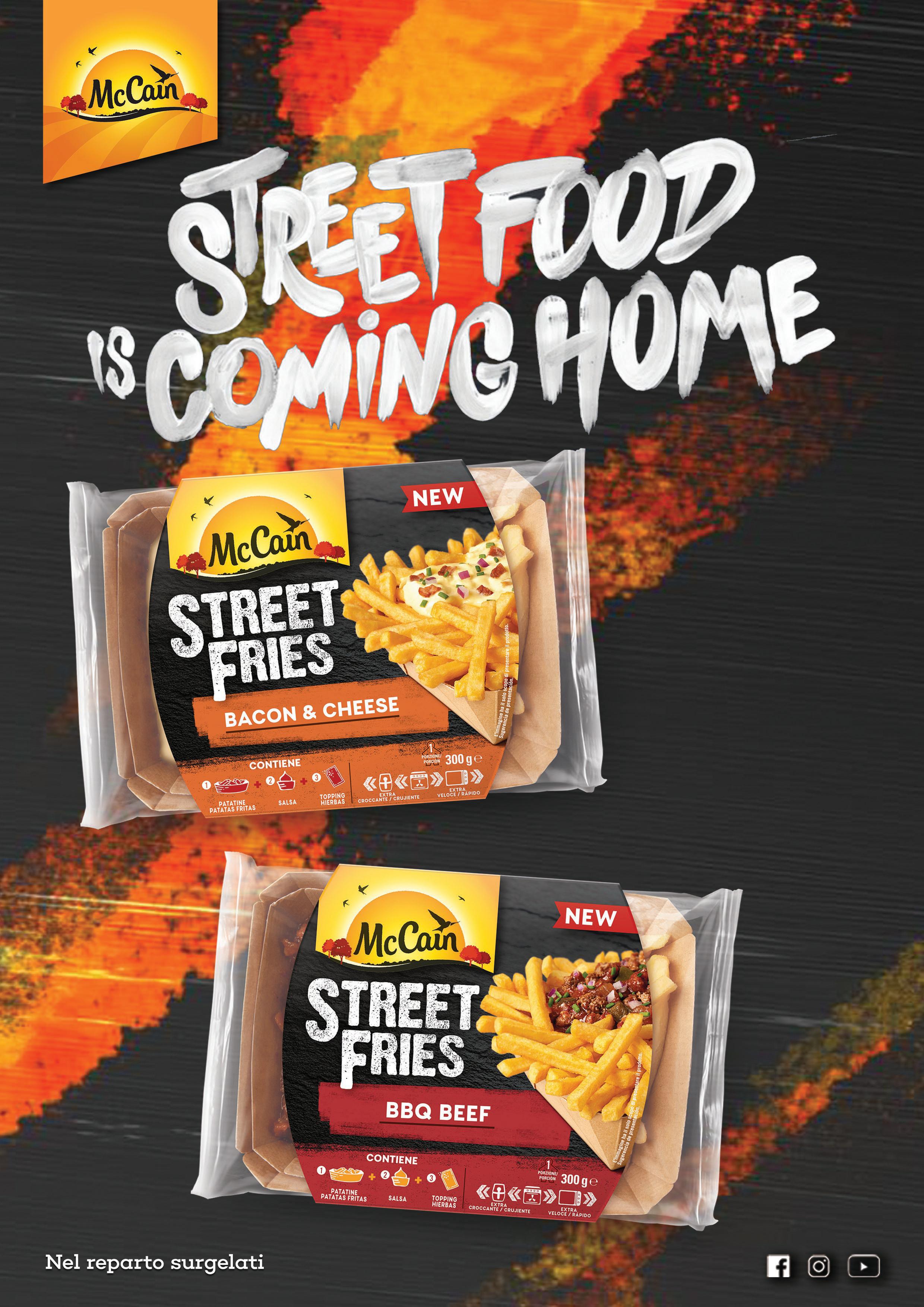 Quest’anno, in casa McCain, l’innovazione va oltre al semplice concetto di pa tatina fritta come contorno. «Dopo l’ultima novità Potato Petals, fette di patata ondulate e con la buccia, trendy, dall’aspetto autentico e artigianale – spiega Tamara Fardelli – abbiamo lanciato Street Fries, deliziose patatine fritte, accompagnate da una gustosissima salsa in due ricette (formaggio e pancetta o carne di manzo e salsa Bbq) con un trito di erba cipollina e cipolla rossa per renderle ancora più sfiziose. La gamma prende ispirazione direttamente dal mondo dello street food e dal concetto di loaded fries che negli ultimi anni sta prendendo sempre più piede».