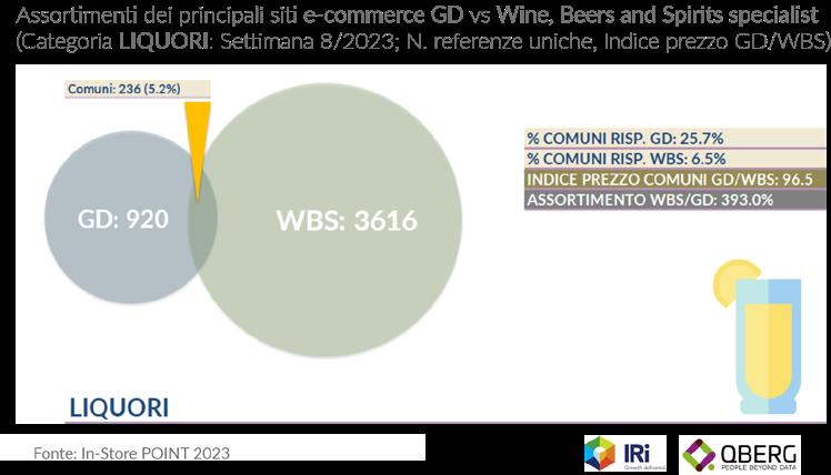 QBerg , istituto di ricerca italiano leader nei servizi di price intelligence e di analisi delle strategie assortimentali cross canale (flyer, punti vendita fisici, e-commerce e newsletter), ha analizzato l’andamento dell’offerta di vino, champagne e spumante, liquori e birre nel canale e-commerce, i cosiddetti wine specialist.