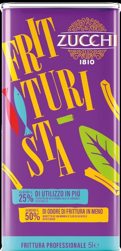 Da Oleificio Zucchi arriva un prodotto ideato per rispondere alle esigenze del mondo Horeca: il Fritturista. Chiaro lo scopo: garantire al professionista una frittura di qualità. Disponibile in formati da 5 e 10 litri, questo prodotto dalle alte performance in termini di resa (+25% cicli di frittura) è stato sviluppato con il coinvolgimento del Dipartimento di Scienze del Suolo, della Pianta e degli Alimenti dell’Università degli Studi di Bari Aldo Moro. La formulazione è costituita da olio di semi di girasole ad alto contenuto di acido oleico addizionato con estratti naturali di tocoferoli e acido citrico che amplificano e rafforzano le performance del prodotto rispetto alla media. Risultati testati con successo in Cast Alimenti e nei locali della Avpn (Associazione Verace Pizza Napoletana). u