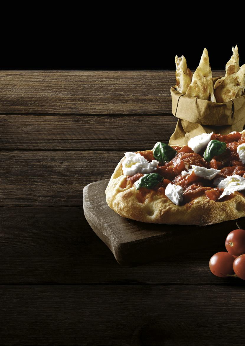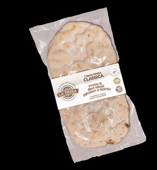 At the Paris Fair, LaPizza +1 will present a couple of really tasty and easyto-eat ideas. “We will bring our crispy pinsa packaged in Atm at fixed weight and that don’t need to be stored - explains Sante Ludovico. The long leavening process and our natural sourdough starter make this an cient specialty particularly light and digestible, plus it is preservative-free, cooked on stone and suitable for vegan diets. But this is not all, we will also present our new lingue croccanti, our latest baked, crispy snack, made from 100% Italian flour, extra virgin olive, and preservative-free, perfect for happy hours, tapas and appetizers.”