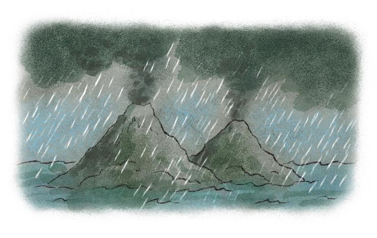 Il vapore acqueo si addensò in enormi nubi e cominciò a piovere moltissimo. Per la caduta di queste piogge incessanti, si formarono i mari e gli oceani .