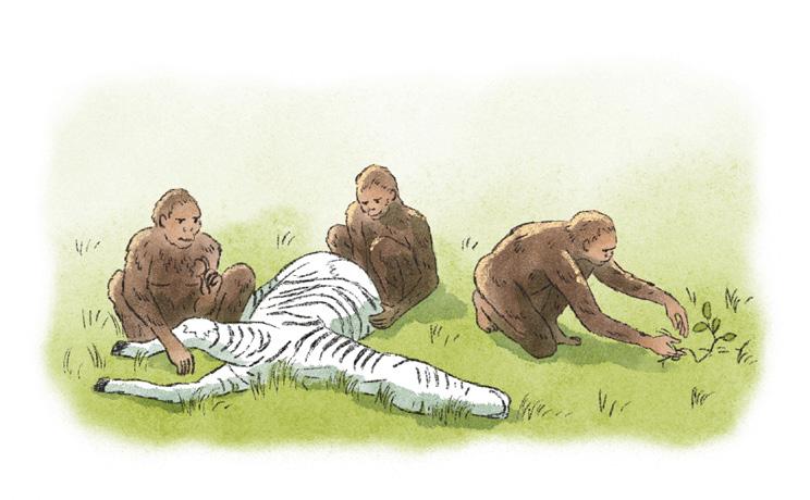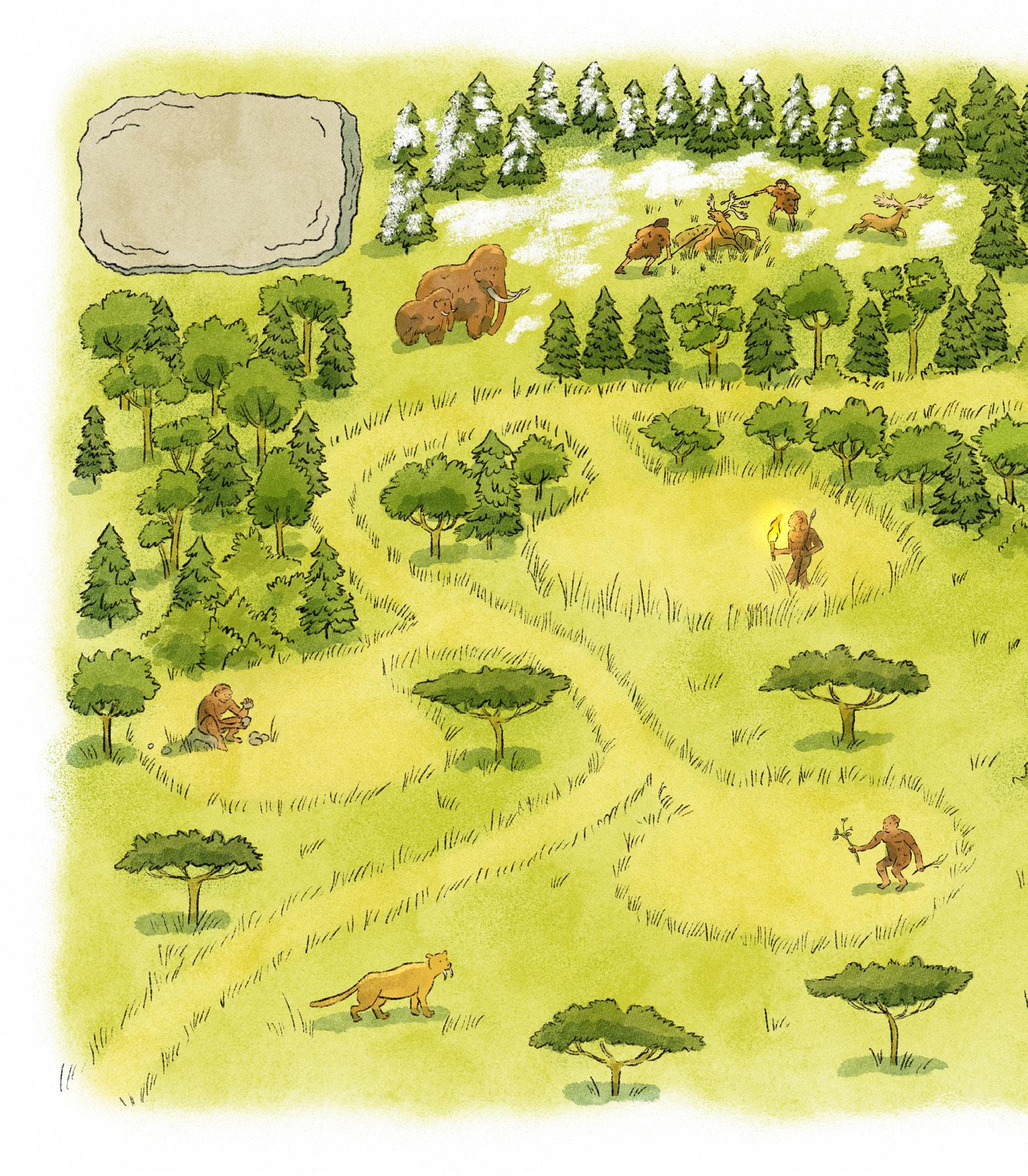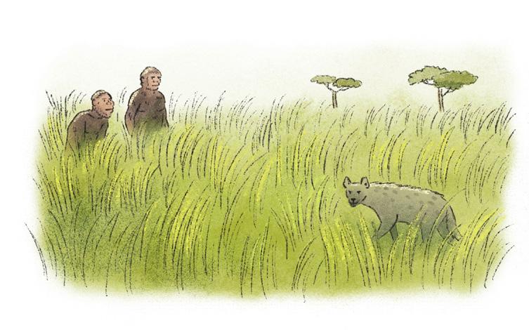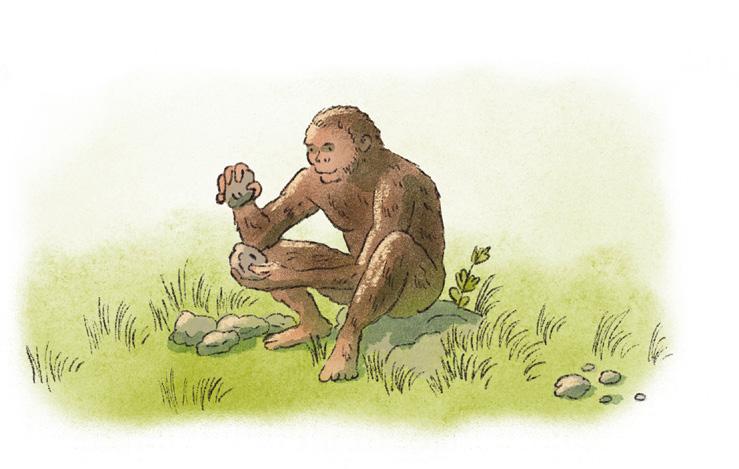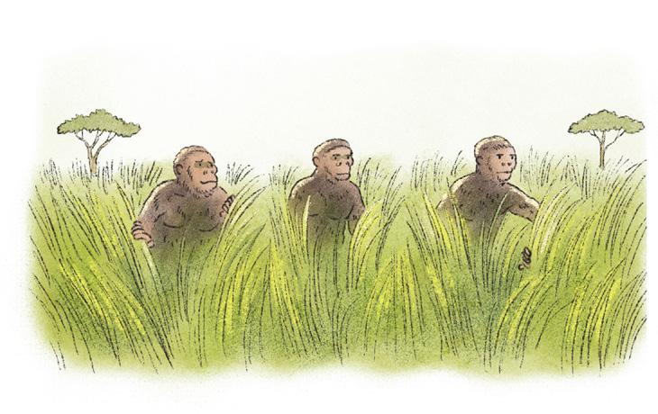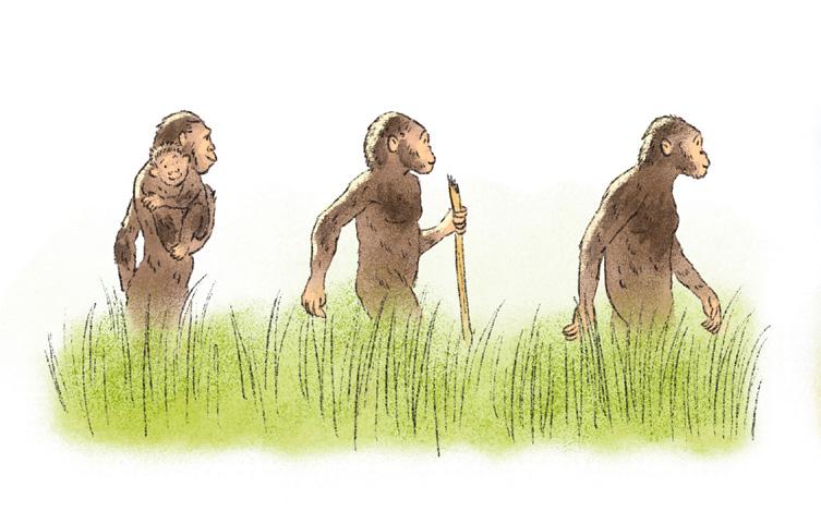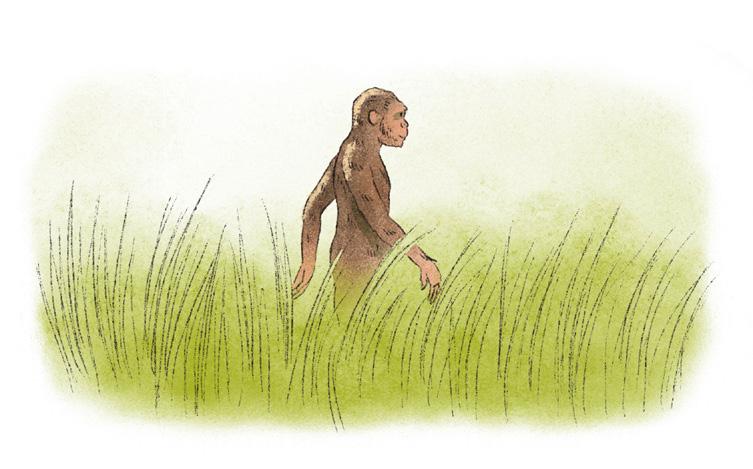 A un certo punto comparvero dei mammiferi speciali. Erano bassi, camminavano su due gambe con la schiena incurvata in avanti e le gambe piegate sulle ginocchia. Erano gli ominidi, gli antenati degli esseri umani.