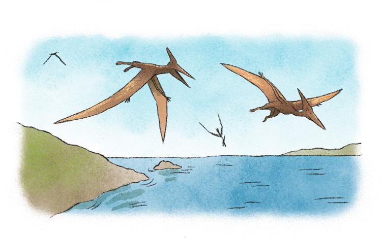 Nel cielo volavano dei giganteschi rettili. I più grandi avevano una apertura alare di quasi 10 metri. Sulle ali, alcuni avevano degli artigli per catturare i pesci da mangiare come fossero arpioni.