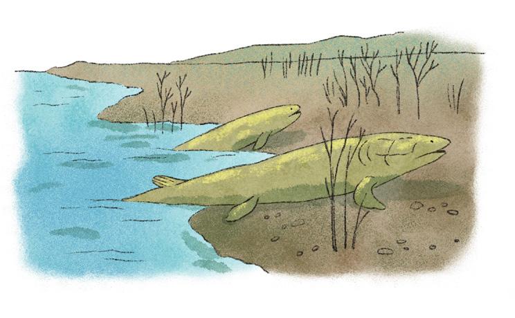 In seguito, alcuni pesci impararono a respirare fuori dall’acqua. Nacquero così i primi anfibi che si può dire abbiano una «doppia vita». Da piccoli vivono in acqua e respirano con le branchie come i pesci, mentre da adulti sono animali terrestri.