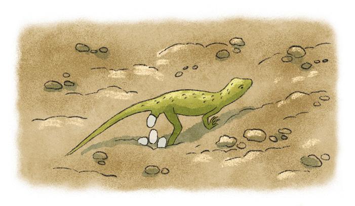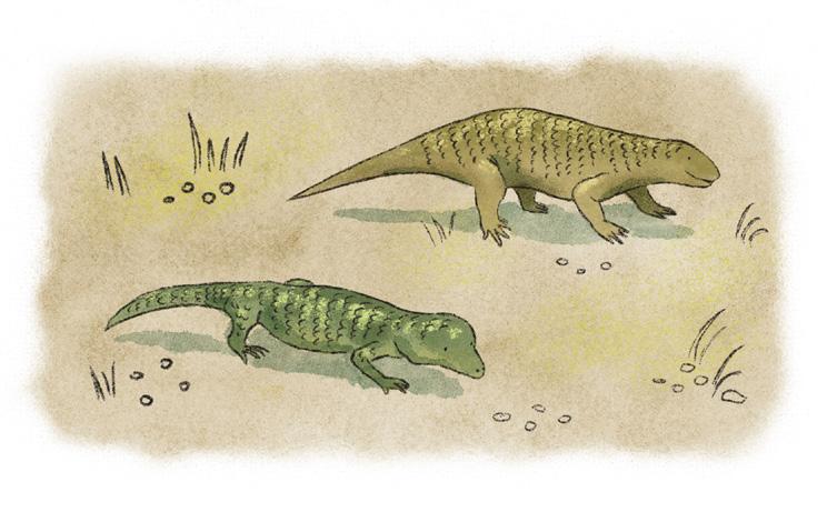 Sulla Terra comparvero animali con la pelle molto più dura, ricoperta da squame e placche, capace di resistere anche al sole: erano i rettili . All’inizio erano piccoli e avevano delle zampe corte. Con il passare dei millenni alcuni di loro divennero giganteschi.