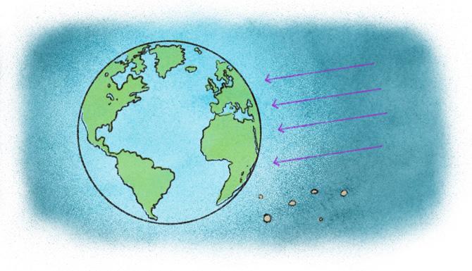 Lo scontro riempì l’aria di polvere. Il cielo si coprì di nubi impenetrabili che facevano da scudo al Sole, tanto che per mesi e anni non ci fu più né luce né calore sulla Terra.