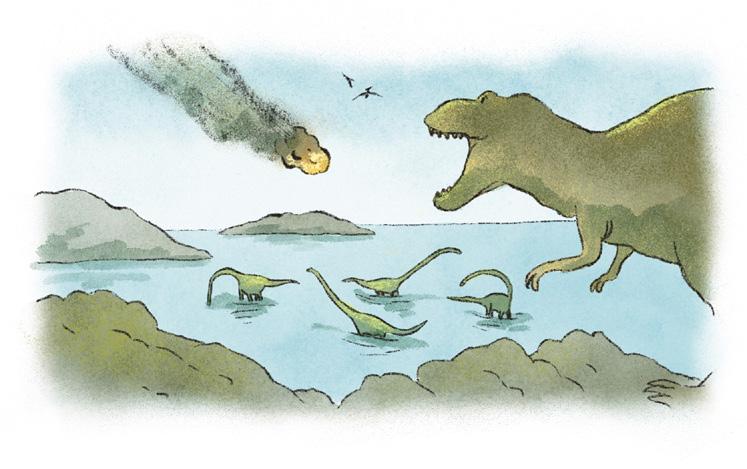 I dinosauri popolarono la Terra per moltissimo tempo, poi si estinsero , cioè scomparvero completamente. Il motivo è ancora oggi un mistero. Gli studiosi hanno cercato di capire come questo sia potuto accadere.