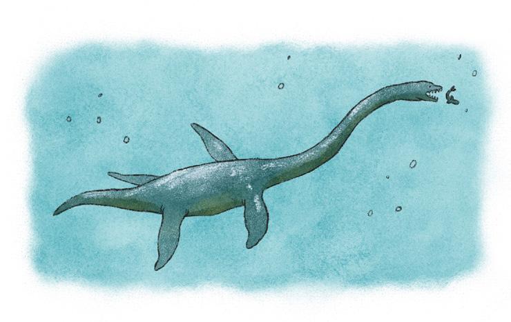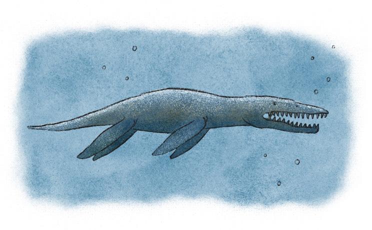L’ Elasmosauro aveva una testa piccola ma un collo lunghissimo, che gli permetteva di cogliere di sorpresa le prede senza muovere l’intero corpo. Altrimenti i pesci avrebbero fatto in tempo a fuggire.