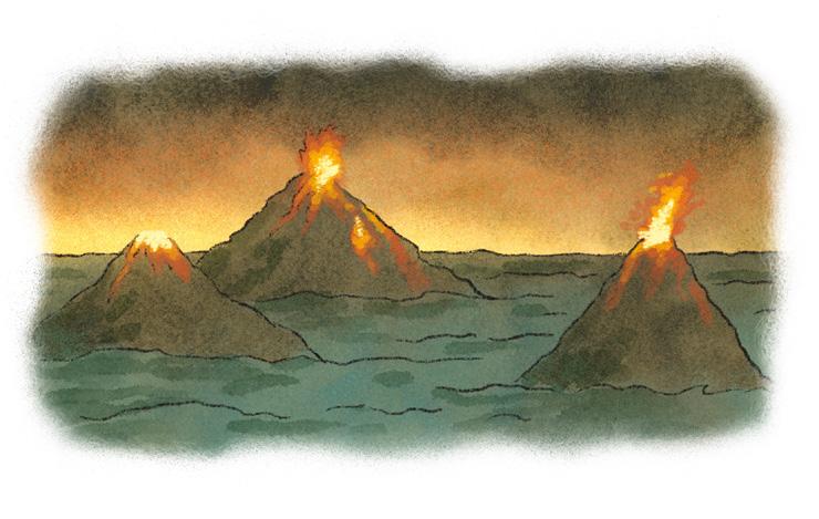 C’erano ancora tantissimi vulcani che eruttavano lava infuocata. La Terra era proprio un posto inospitale. Soltanto dopo molti milioni di anni la Terra diventò come la conosciamo noi.