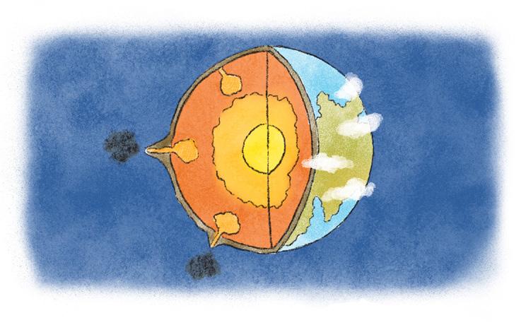 All’inizio anche la Terra era incandescente, ma con il tempo la crosta esterna cominciò a raffreddarsi e indurirsi. All’interno, però, ancora ribolliva. I vulcani eruttavano facendo uscire lava, gas e vapore acqueo.
