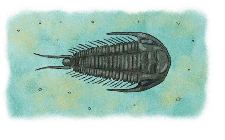 Uno dei primi animali marini della preistoria fu il trilobite .* Camminava sul fondo degli oceani nutrendosi di fango e piccoli organismi. Il suo corpo è come una corazza divisa in tre lobi, cioè in tre parti.