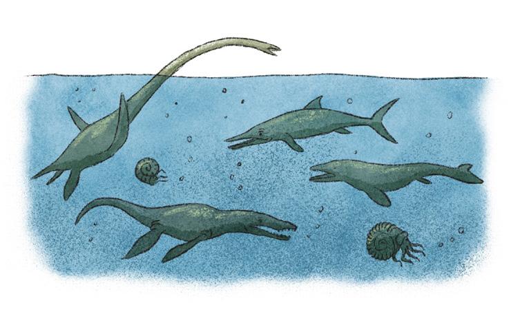 Poi comparve il Liopleurodonte , un enorme rettile marino con un lungo muso da coccodrillo.