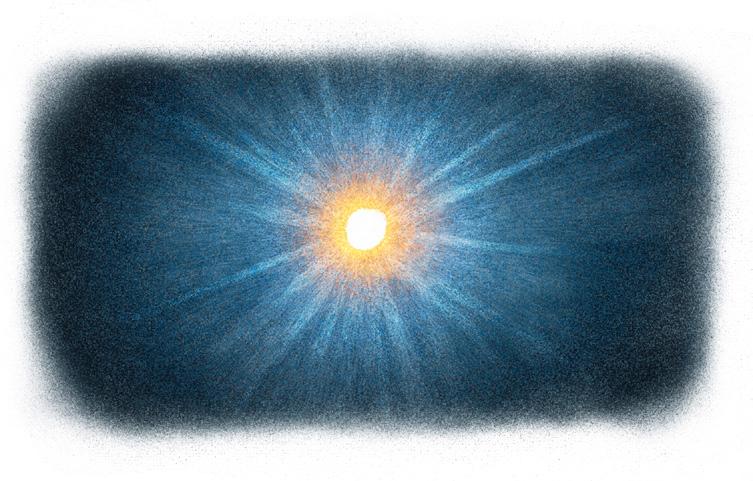 Gigantesche nuvole di gas e polveri cominciarono ad allontanarsi e a ruotare in tutte le direzioni, mentre luci di giallo e rosso fiammante illuminavano lo spazio.