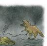 Tra i dinosauri carnivori, uno dei più feroci era il Tirannosauro .* Aveva una coda lunga che serviva per bilanciare il peso del corpo, perché stava in equilibrio solo su due zampe. Per fortuna non c’era ancora l’uomo.