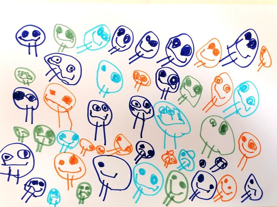 Attività ludico-creativa in cui ogni bambino e ogni bambina decora a piacimento la foto della propria faccia (appesa su un cartellone a parete, vicino a quella dei compagni).