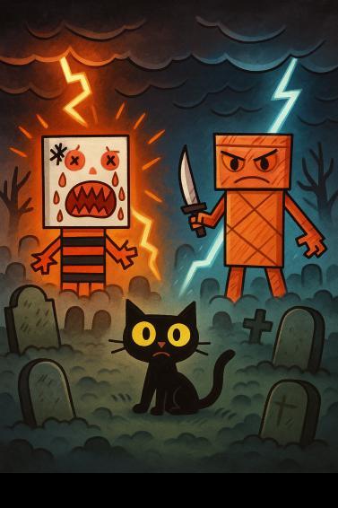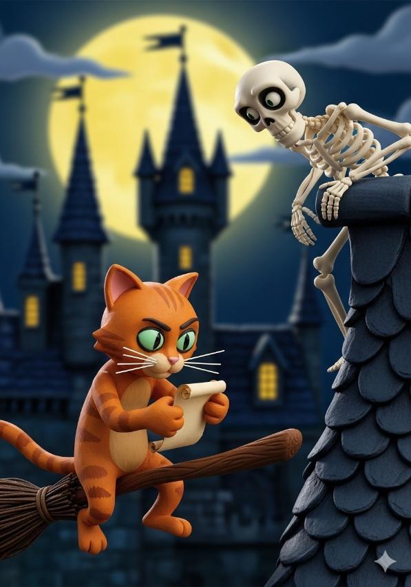 Fu così che iniziò la Festa dei Giochi Stregati. Tra scheletri che ridevano, pipistrelli chiacchieroni, streghe con le scope storte e fantasmi sonnolenti, i tre amici capirono che anche la paura può far parte della festa. Basta tenerla per mano e continuare a giocare.