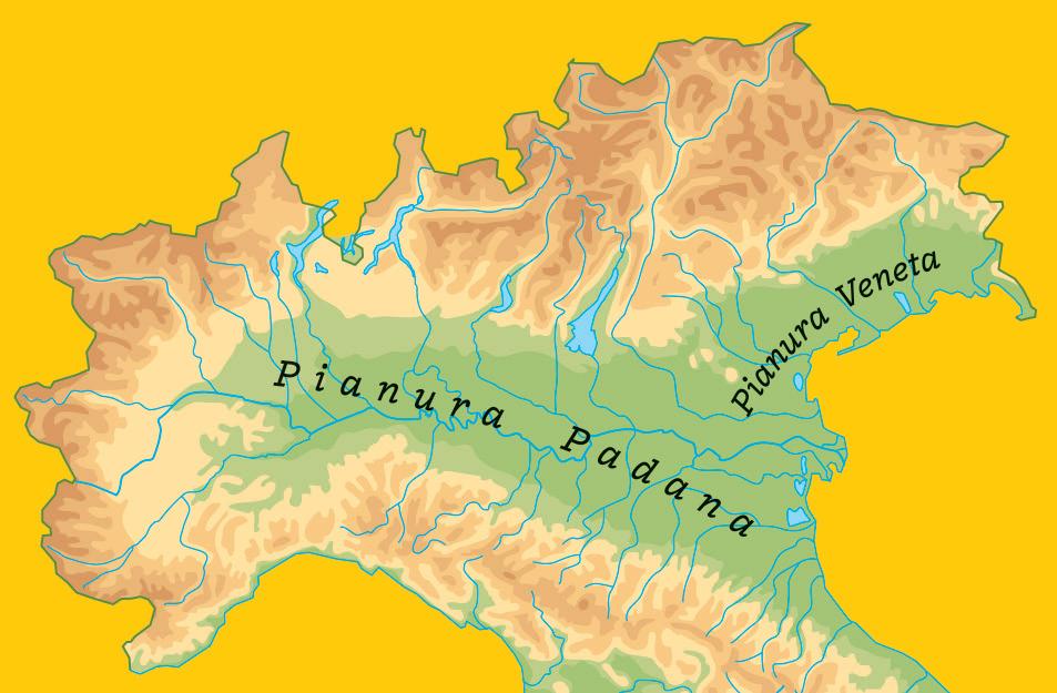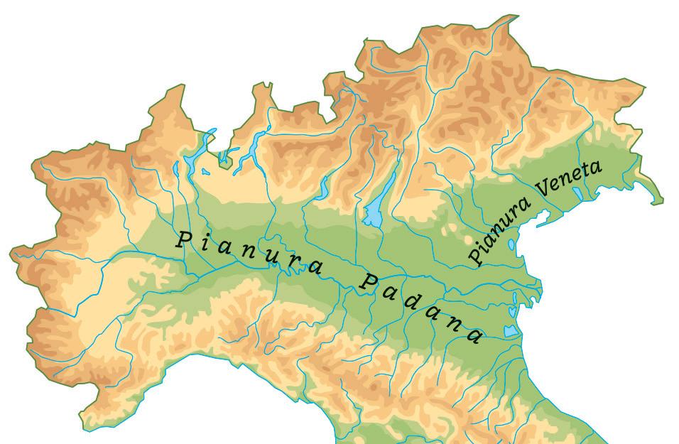 In Italia ci sono tante pianure, quasi tutte di piccole dimensioni, tranne la Pianura Padana. Questa pianura è molto grande e si trova a Nord della penisola, al di sotto delle montagne dell’arco alpino. È una pianura di origine alluvionale, si è formata infatti a causa dei detriti portati a valle dal fiume Po e dai suoi affluenti. L’acqua di questi fiumi scendendo dalle montagne del Nord, le Alpi, ha portato con sé materiali pesanti come sassi, pietre e blocchi di roccia che col tempo si sono depositati ai piedi dei monti. Il fiume, proseguendo poi verso la foce, ha trasportato materiali più leggeri, come sabbia, ghiaia e argilla. In alcune zone della pianura, l’acqua ristagna e forma paludi o acquitrini.