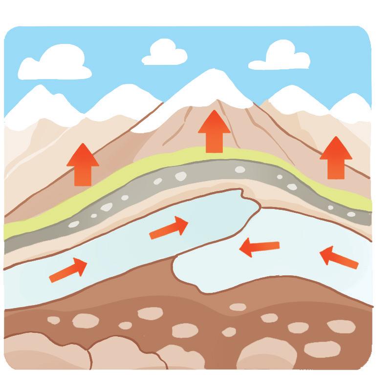 Montagne nate dai movimenti della crosta terrestre che hanno spinto cumuli di roccia l’uno contro l’altro, formando i rilievi.