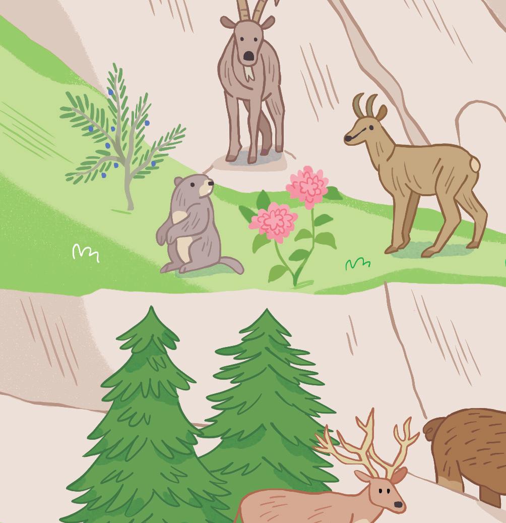 In montagna, a seconda dell’altitudine, si trovano specie diverse di piante e animali.