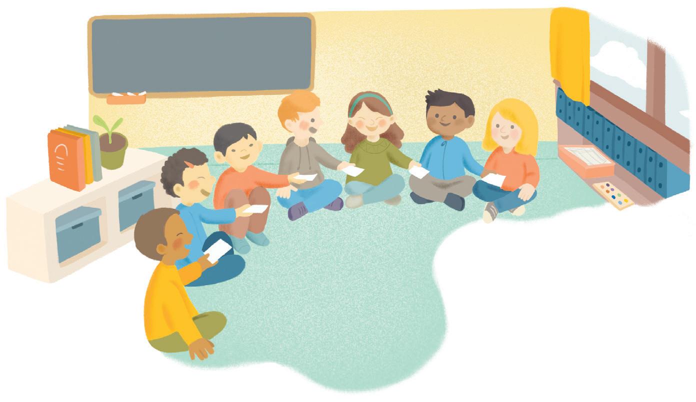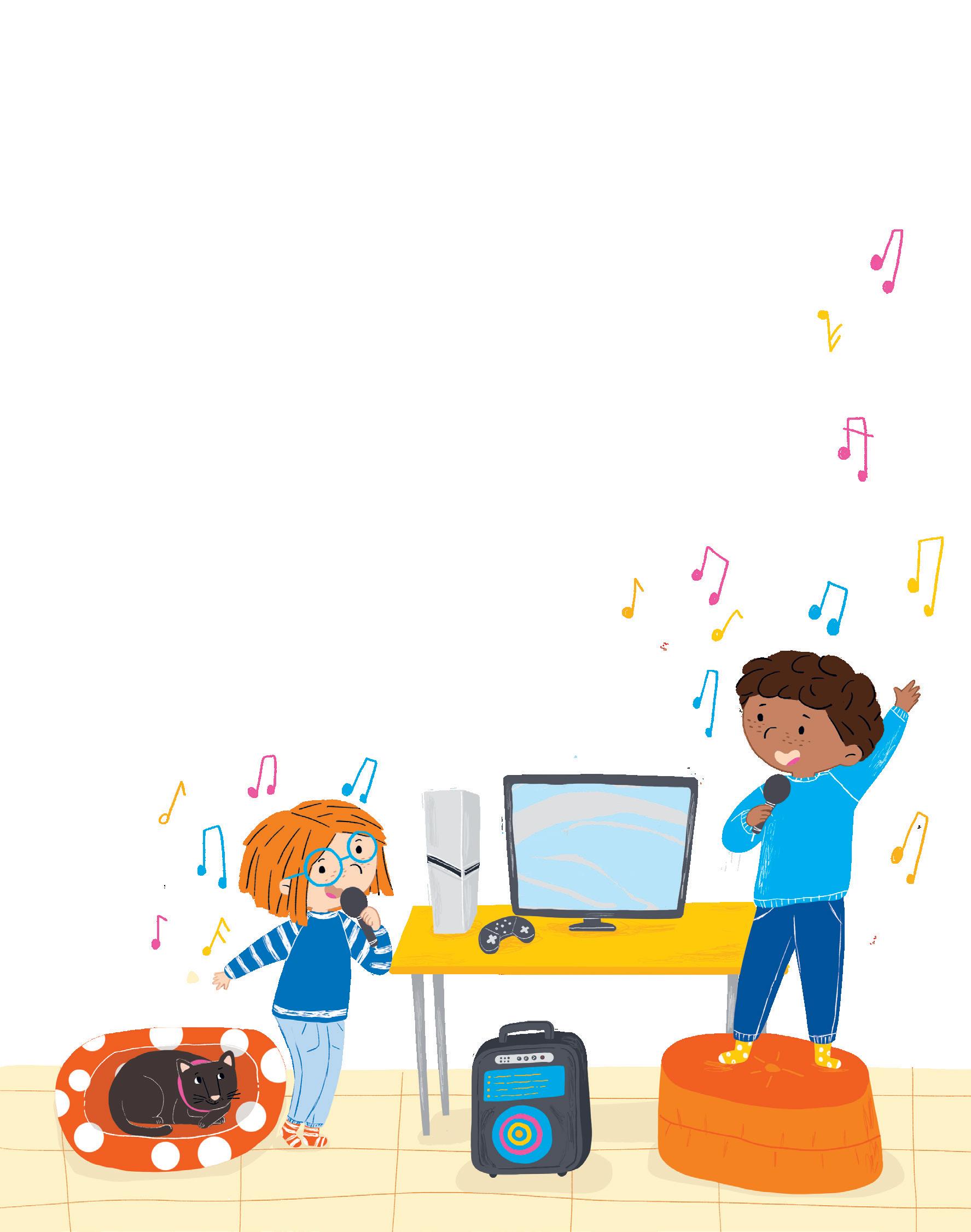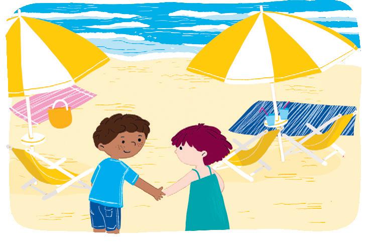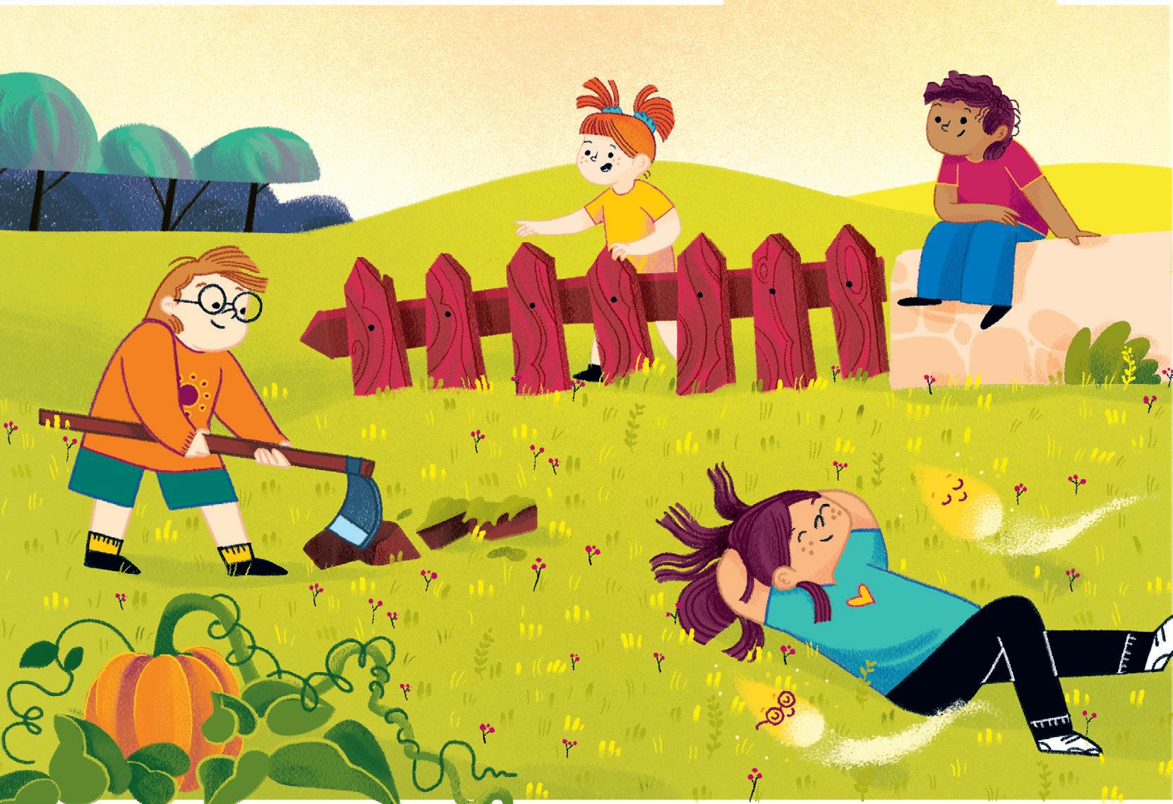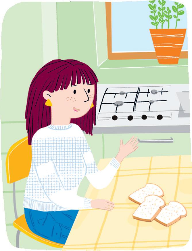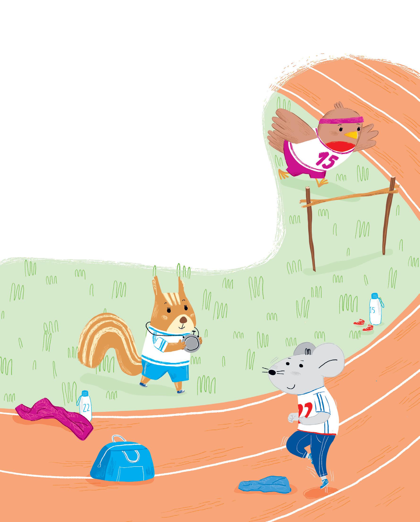 Pensa agli amici e all’amica che sta per incontrare vicino al fiumiciattolo. Mangia in fretta ed esce di casa: ecco Ines che sta facendo una corsetta. Ci sono anche Karim e Ale che, seduti sull’erba, si stiracchiano.