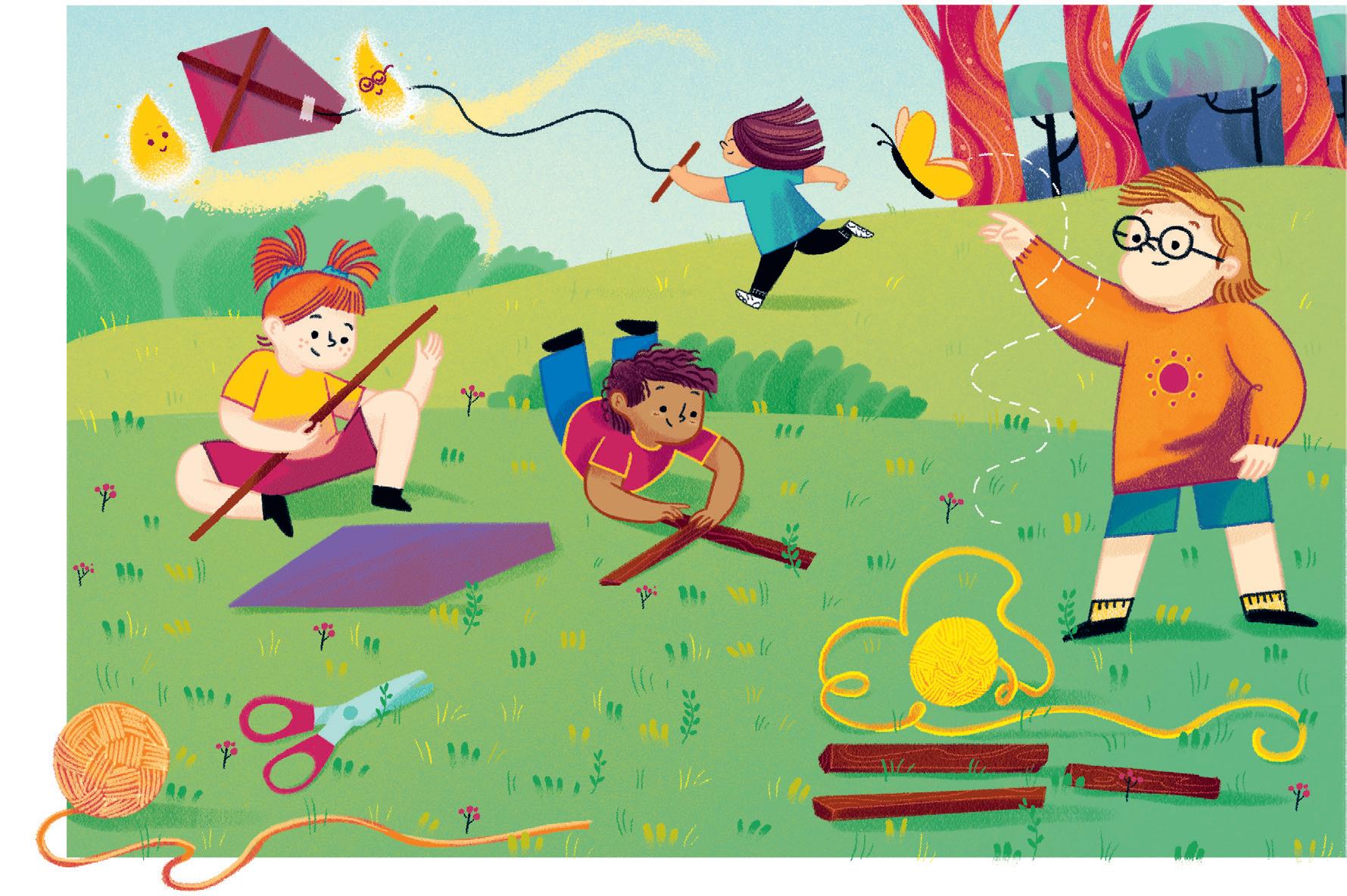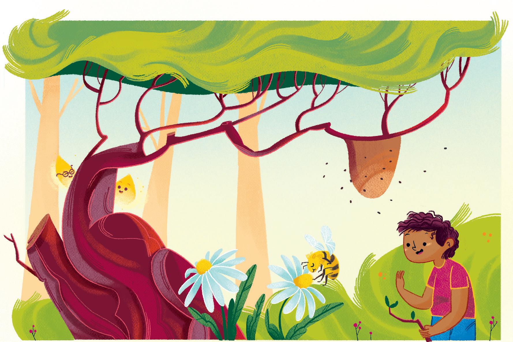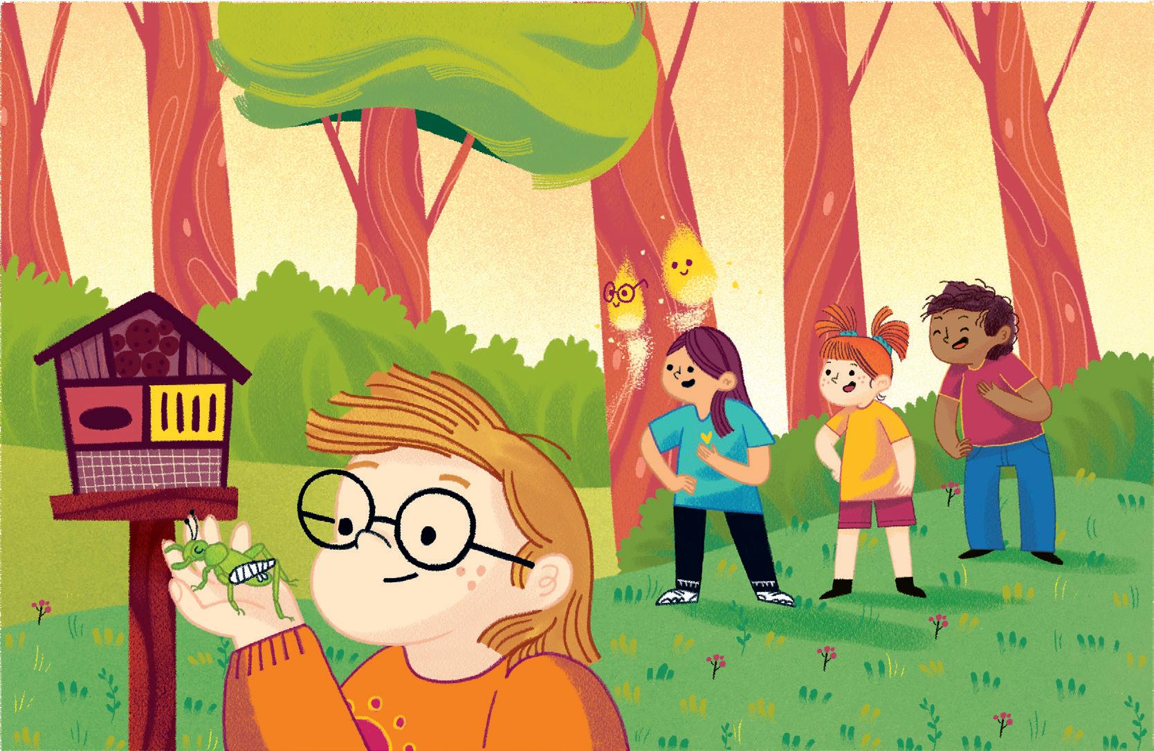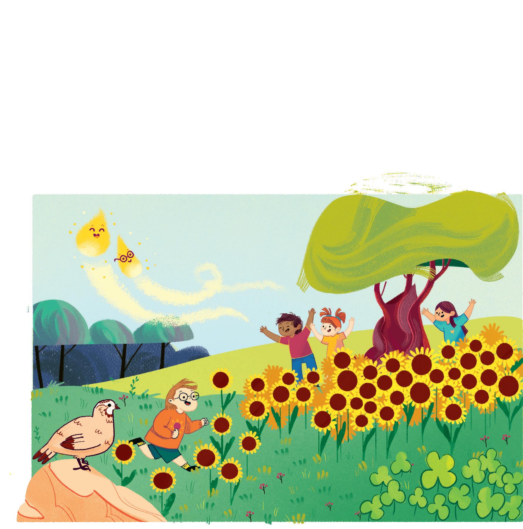 «Ale mi ha aiutato a colorare il cielo che è sempre la parte più difficile» prosegue Karim, contento che il suo amico e le sue amiche siano sempre pronti a dargli una mano. Il cielo sopra Boscoluce è pieno di cose da immaginare. Ale guarda in alto e fa l’occhiolino a Ines. Anche Emma alza gli occhi oltre le cime dei grandi alberi. Tra i rami del salice intravede uno scoiattolo.