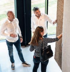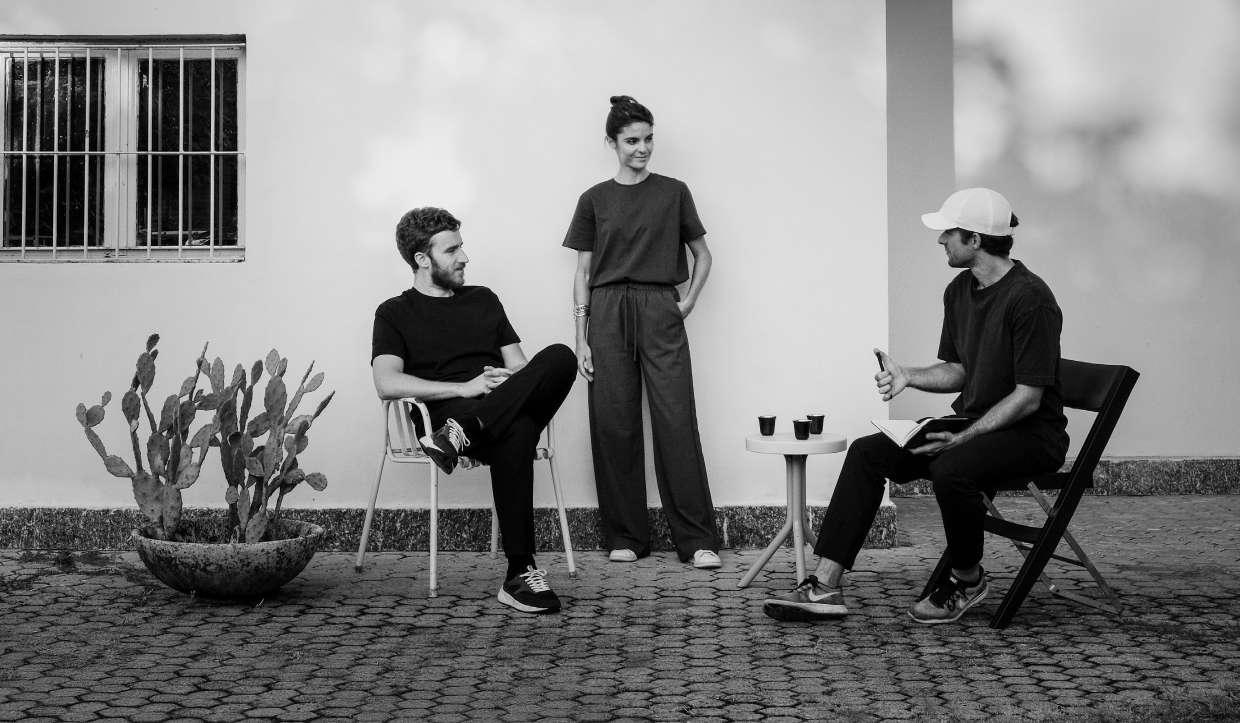 i tre fondatori dello studio Nube: Giulia Turatto, Beniamino Brambilla, Jacopo Breda a destra.