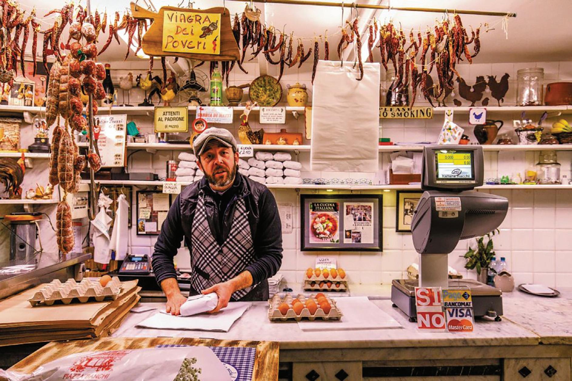 La cinquecentesca chiesa di San Pietro in Banchi (p. xx), elevata sopra le botteghe, rappresenta una curiosa commistione tra sacro e profano.