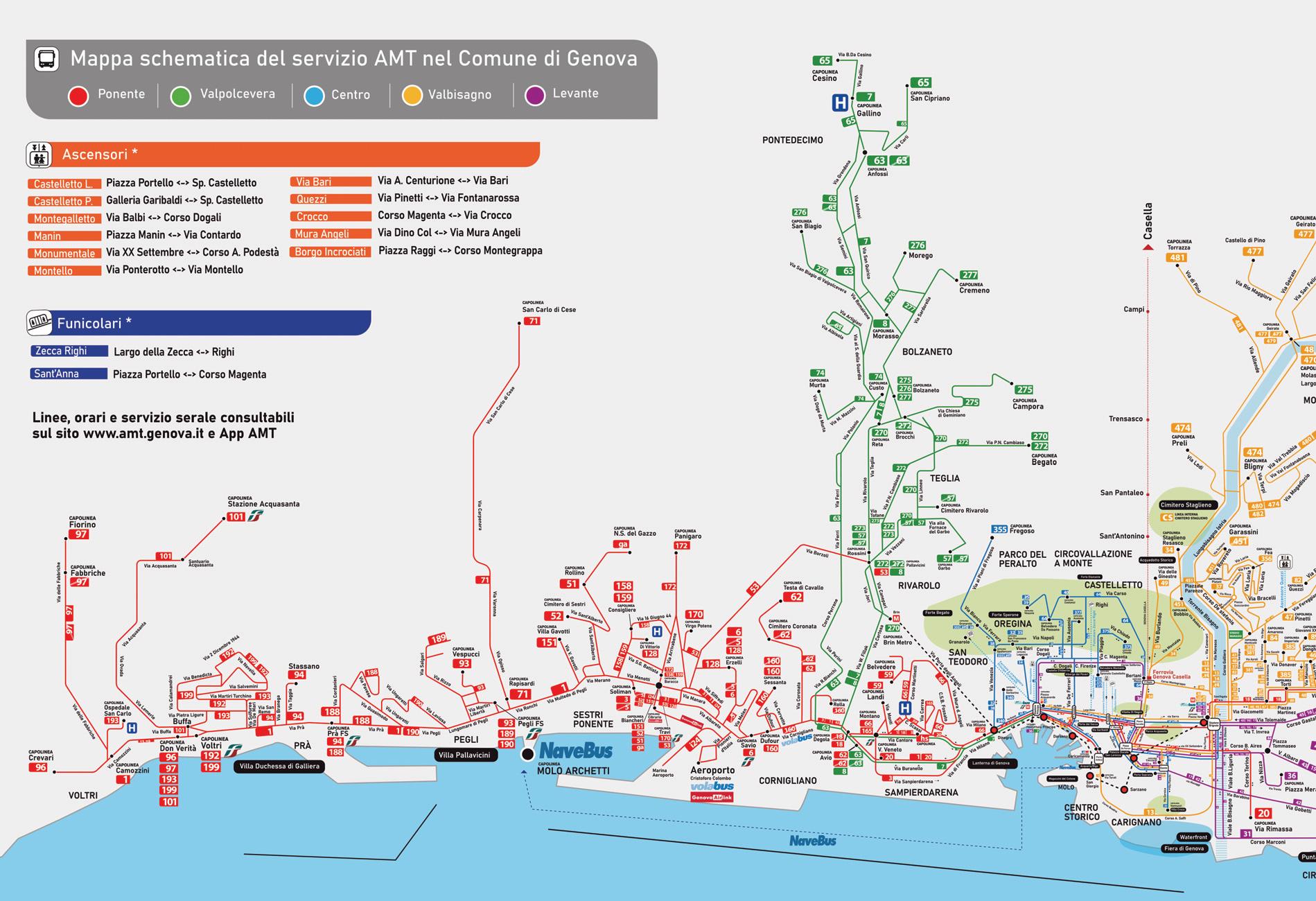 Genova ha una dimensione tutta verticale, fatta di strette crêuze, i tipici viottoli che si inerpicano su per le colline che circondano la città. Dalla fine dell’Ottocento, molti impianti speciali di trasporto uniscono il centro alle alture: oggi sono efficienti mezzi di collegamento per i genovesi e attrazioni uniche per i turisti. L’ascensore Liberty di Castelletto Levante da piazza del Portello raggiunge la Spianata Castelletto, uno dei più bei punti panoramici cittadini. Offrono spettacolari vedute anche la funicolare Zecca-Righi, l’ascensore combinato orizzontale-verticale di Montegalletto e la cremagliera di Granarolo. Con la funicolare di Sant’Anna è possibile raggiungere l’Antica Farmacia Sant’Anna che opera da secoli all’interno del convento dei frati Carmelitani Scalzi, specializzata in rimedi erboristici e galenici.