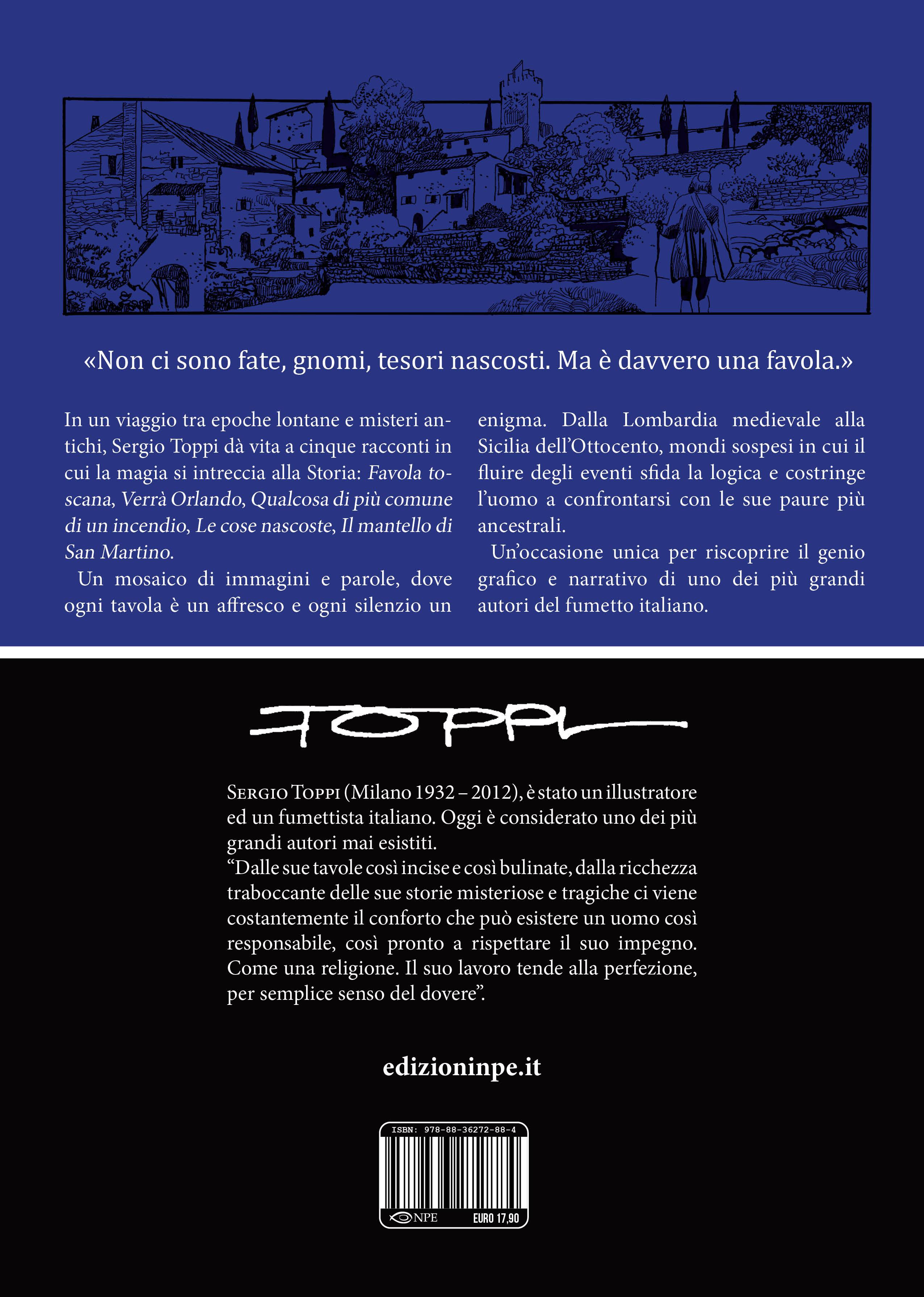 Del resto, basta scorrere la lunga teoria di titoli apparsi nella collana alla quale si aggiunge questo volume per rendersi conto appieno della grandezza di Sergio Toppi, immergendosi in un universo realistico e magico allo stesso tempo. In ciascuna delle vicende narrate in queste pagine, il maestro milanese riesce a trascinare il lettore nelle tavole che ha disegnato, immergendolo in un viaggio senza tempo a fanco dei loro protagonisti, che siano il mastro Domenico della Favola toscana oppure gli eroi della Chanson de geste di Verrà Orlando. Brevi storie su alcune delle quali, soprattutto la prima e l’ultima, si possono riportare alcune considerazioni, mentre in Qualcosa di più comune di un incendio, ad attirare l’attenzione è un particolare curioso collegato in qualche maniera allo stesso autore.