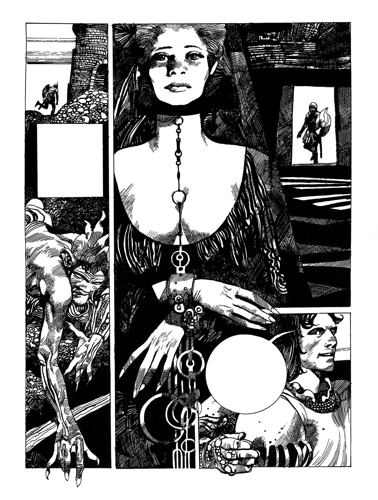 riferimento ad alcune civiltà dell’America precolombiana, anche se queste sono prese soltanto come compendio di un fenomeno assai più ampio nello spazio e nel tempo. Però, sembra dire Toppi in queste poche tavole, l’istinto a esercitare la violenza e a recare la morte sembra incuneato nei recessi più profondi dell’animo e del cervello umano. Ed è sufciente la comparsa di una creatura estranea, un grosso cinghiale, per scatenarli, poiché, come dice lo sciamano, “la voglia di uccidere dorme un sonno leggero dentro ciascuno di noi, sempre pronta a svegliarsi”. Un’amara rifessione che è difcile non condividere.