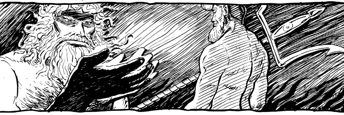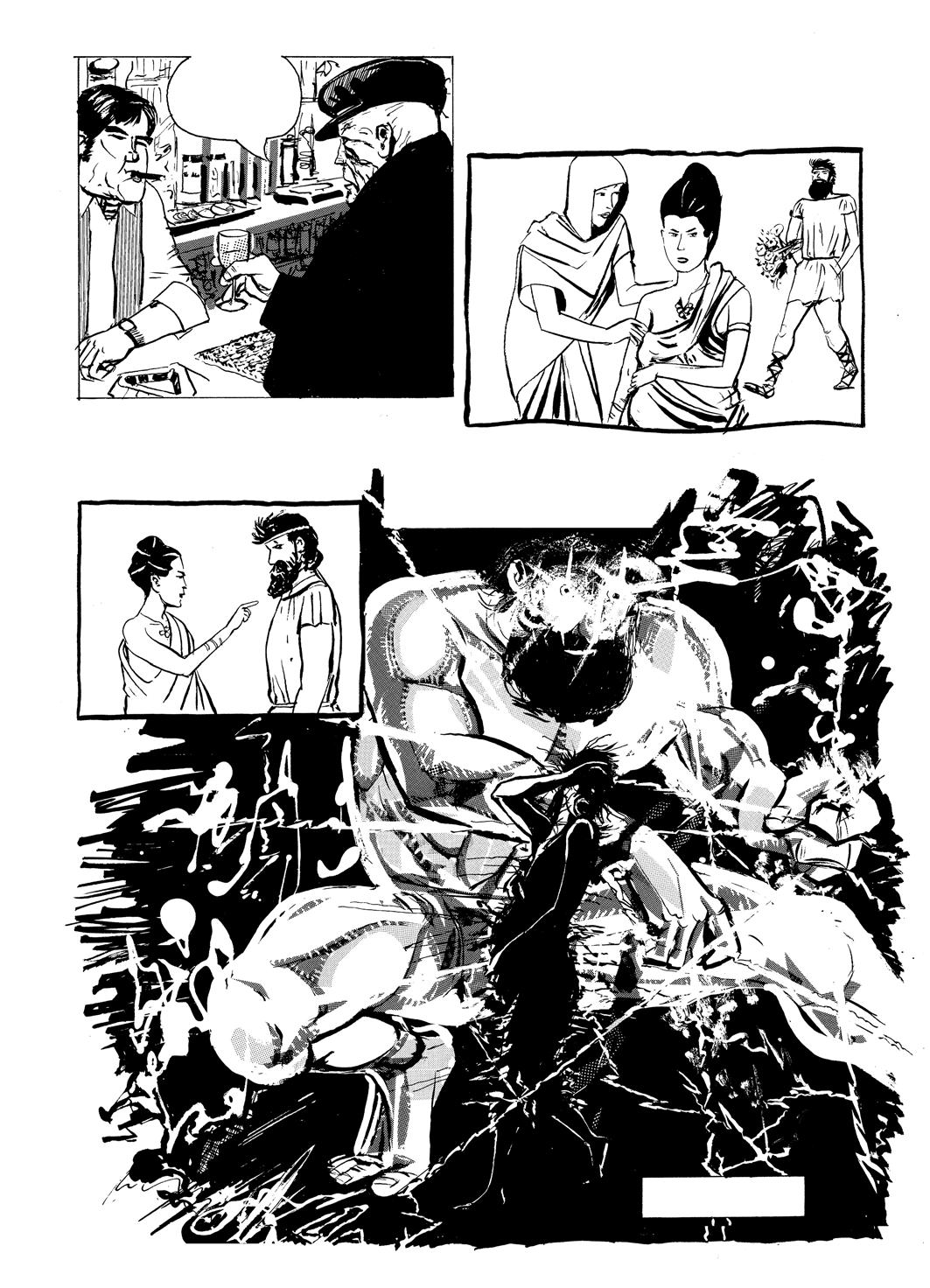 Inletteratura ci si imbatte sempre in un trio di streghe, mentre nella vita reale si può incontrare al massimo un’anziana donna con in mano una teiera. Questa frase mi colpisce più delle due possibilità descritte. Eppure mi piacerebbe, come scrisse Umberto Eco, provarle entrambe. Ed è ciò che ho tentato di fare con Bacchus. Ho voluto sperimentare l’improbabilità di una lunga avventura mentre ne era già in corso un’altra. Non ricordo come concepii il progetto (troppo nitido per defnirlo un’idea) di rendere il dio greco Bacchus protagonista di un fumetto in stile americano, non appena un piccolo editore me ne diede l’opportunità. Probabilmente, a gettare le basi fu lo studio informale della mitologia greca al quale mi dedicai nei cinque anni in cui tagliavo lamiere in una fabbrica (come descritto più tardi in Alec). Per mera edifcazione personale, sfruttai le informazioni contenute nei due grandi volumi de I Miti Greci di Robert Graves per creare un grande albero genealogico, che mostrava come il popolo di ognuna delle antiche città-stato credesse nell’esistenza di una connessione con le divinità, difatti materia del mito. Quello schema era un insieme di scale collegate tra loro, sulle quali potevo tessere una serie di improvvisazioni. Quando ho messo Bacchus in prigione nella prima pagina, non avevo alcuna idea di dove la storia potesse andare a parare. Lo schema proponeva Arianna e Teseo. Una volta ingaggiato Teseo, il collegamento successivo è scaturito da un pensiero laterale. Il titolo del flm Butch Cassidy and the Sundance Kid continuava a ronzarmi nella testa, fnché non divenne “Joe Teseo e Pupilla Kid”. Ammesso che io abbia sgrafgnato quest’ultimo personaggio da qualche parte che non riesco a ricordare, pare che in ogni caso sia inciampato in quel nome prima