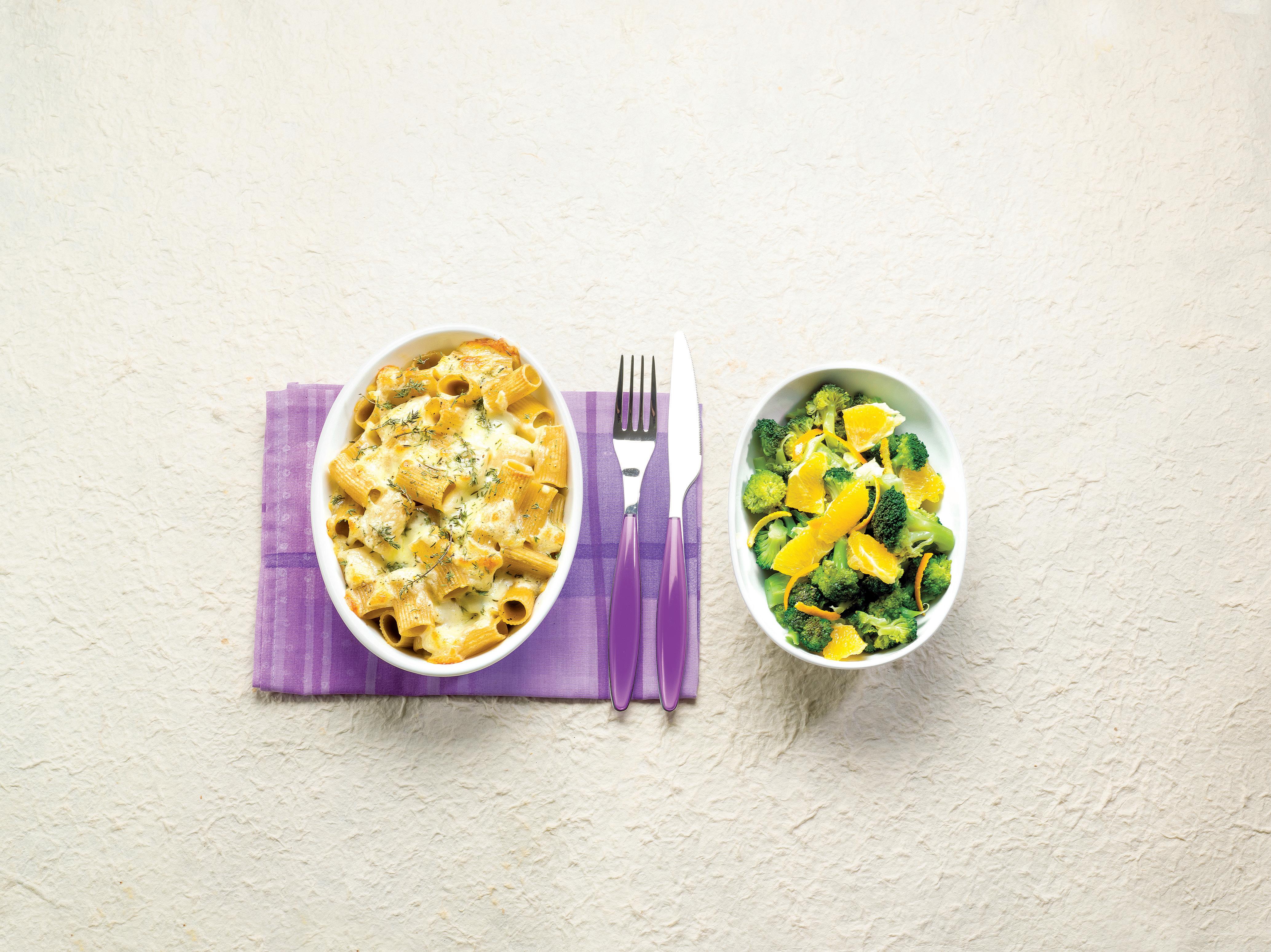 Completa il pasto con 60g di pane integrale e un’insalata di red chard, rucola, carote grattugiate e qualche oliva verde da condire con 2 cucchiaini di olio extravergine d’oliva a persona e succo di limone q.b.