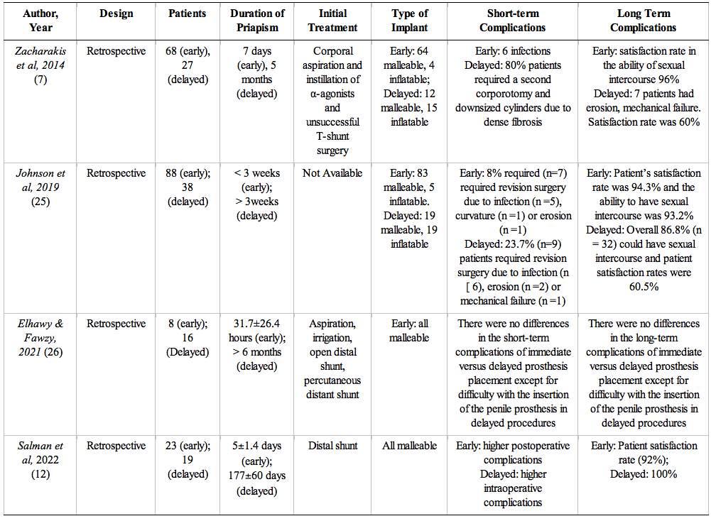 12576 A systematic review and meta-analysis of shor t- and long-ter m complications of ear ly versus delayed penile prosthesis implantation in patients with ischemic priapism