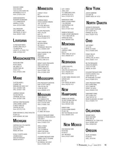 TERRY KINGSLEY 4554 RANDOLPH RD FARMINGTON, MO 63640 Home: (573)756-4046 Office: (314)992-7263 DALE LAWRENCE 12121 CR 3410 ST JAMES, MO 65559 RUDOLPH PINZGAUER FARMS BOB/NANCY & TRAVIS RUDOLPH 4795 HWY P FESTUS, MO 63028-3224 Home: (314)933-2720 CIRCLE U RANCH JOHN UHLMAN 12911 N HOME RD LIBERTY, MO 64068 Home: (816)781-1249 COLEMANS PINZGAUER FARM DARRIEL & BETTY COLEMAN 3649 US HWY 61 BLOOMSDALE, MO 63627 Home: (314)483-2408