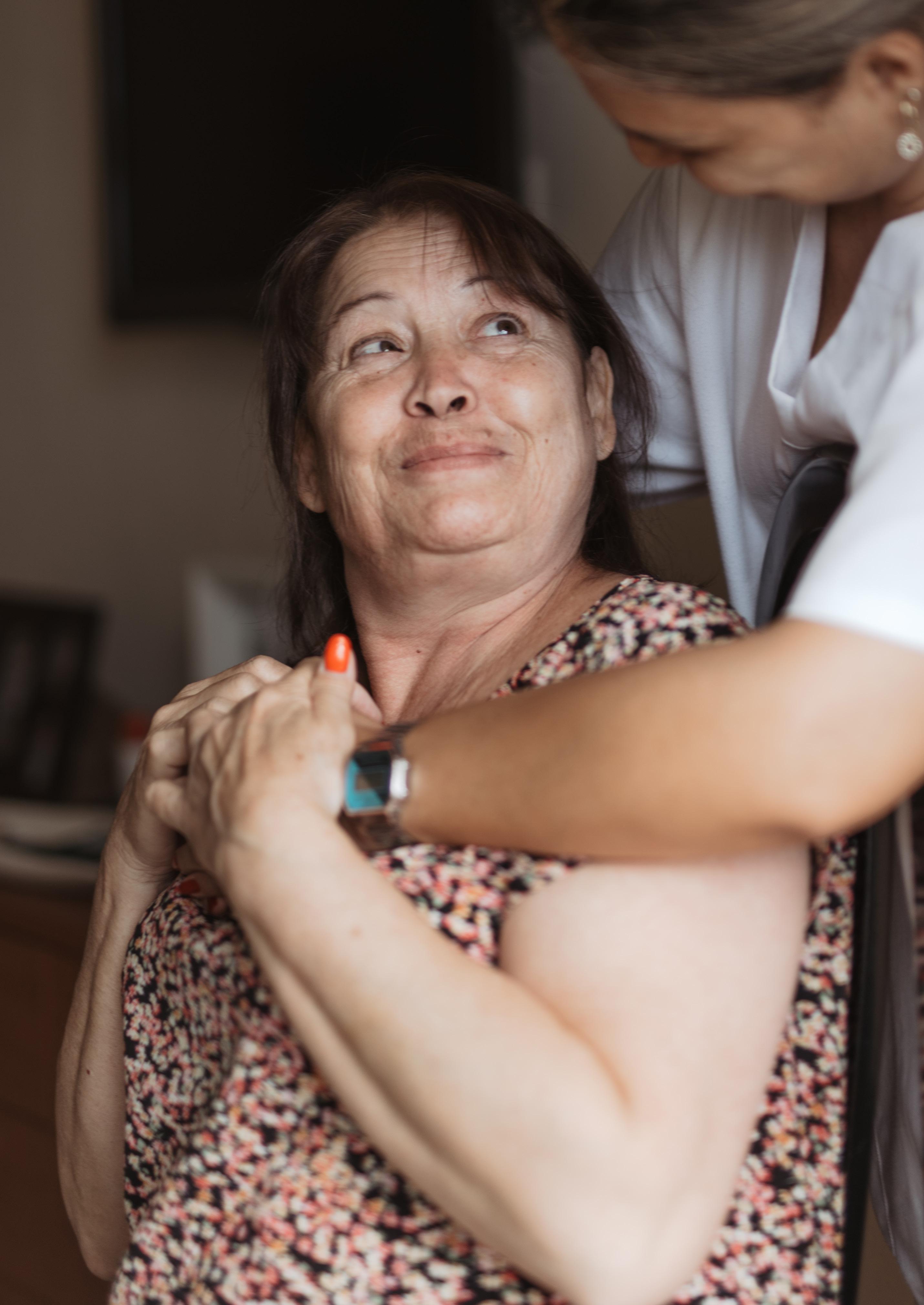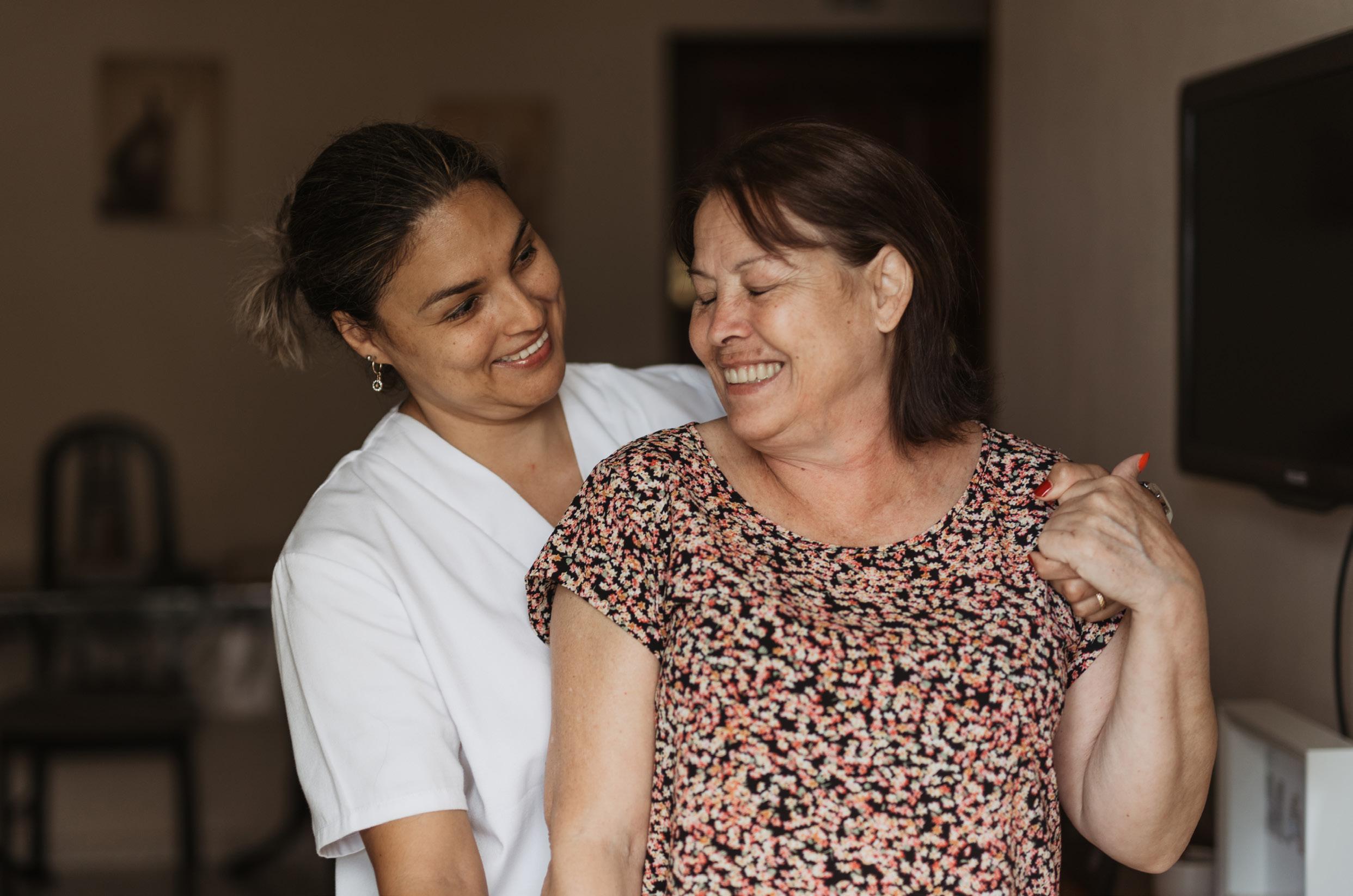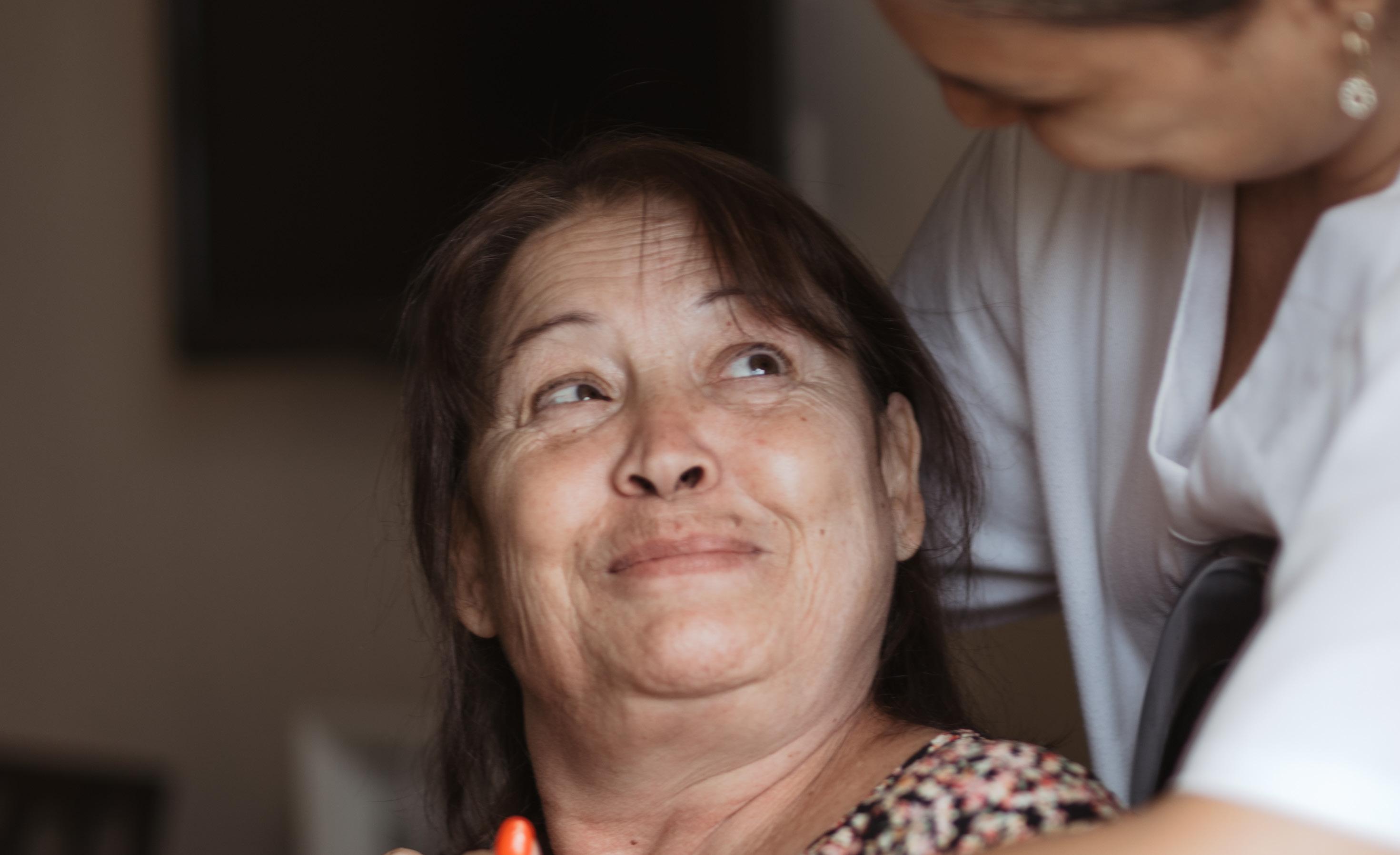 Profesional de ayuda a domicilio haciendo terapia a una de sus usuarias