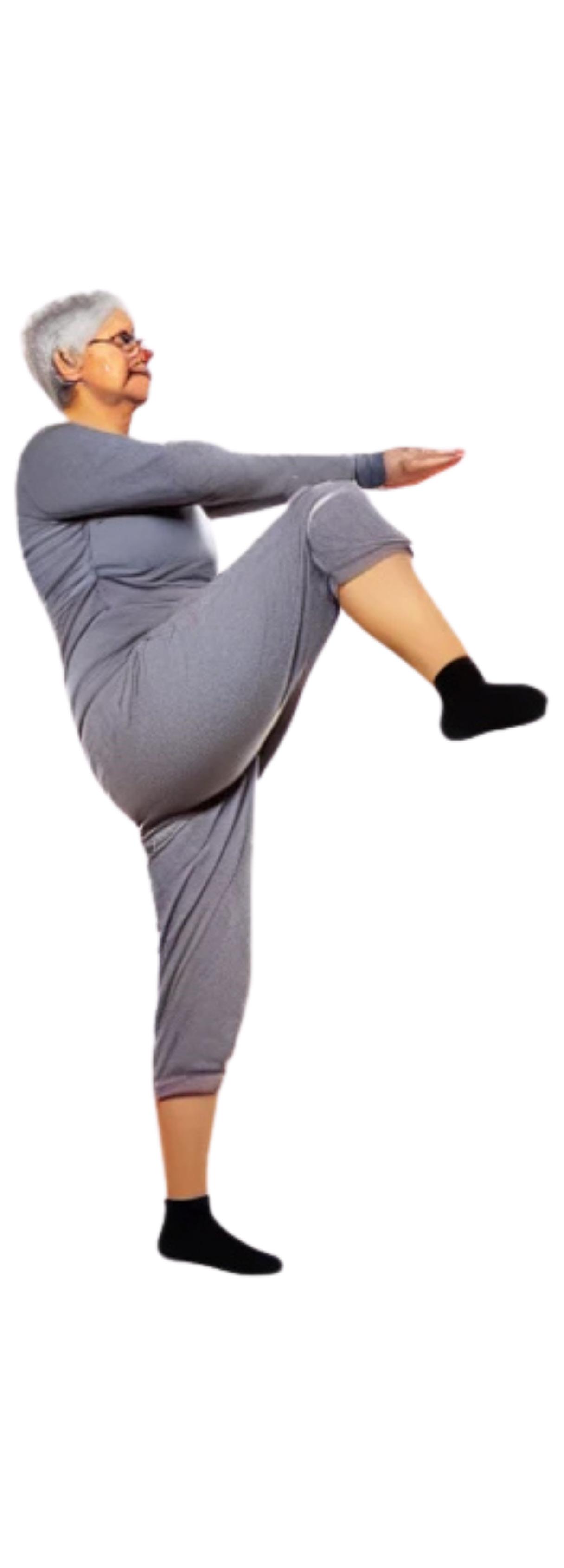 ● Mejora del equilibrio y coordinación: Realizar ejercicios de pie que incluyan movimientos controlados ayuda a prevenir caídas y mejora la movilidad general.
