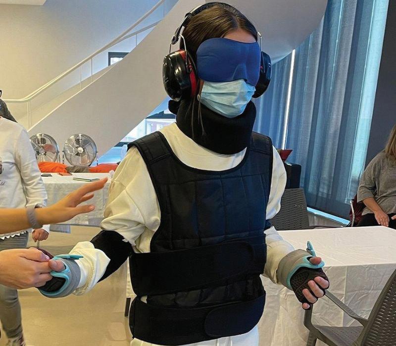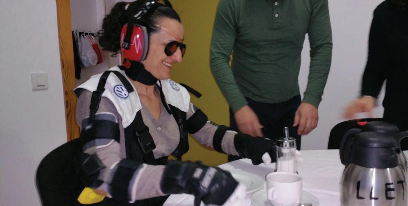 El traje Max es una herramienta de simulación de envejecimiento y empatía. Está diseñado para que quien lo lleve pueda sentir en su propio cuerpo las limitaciones que viven muchas personas mayores o en situación de dependencia: rigidez articular, pérdida de visión o audición, dificultades al caminar… Este “pasar por el cuerpo” transforma por completo la forma en que se entiende el cuidado, porque no se trata solo de saber qué le pasa al otro, sino de sentirlo. Y eso genera un impacto muy profundo en profesionales y personas cuidadoras.