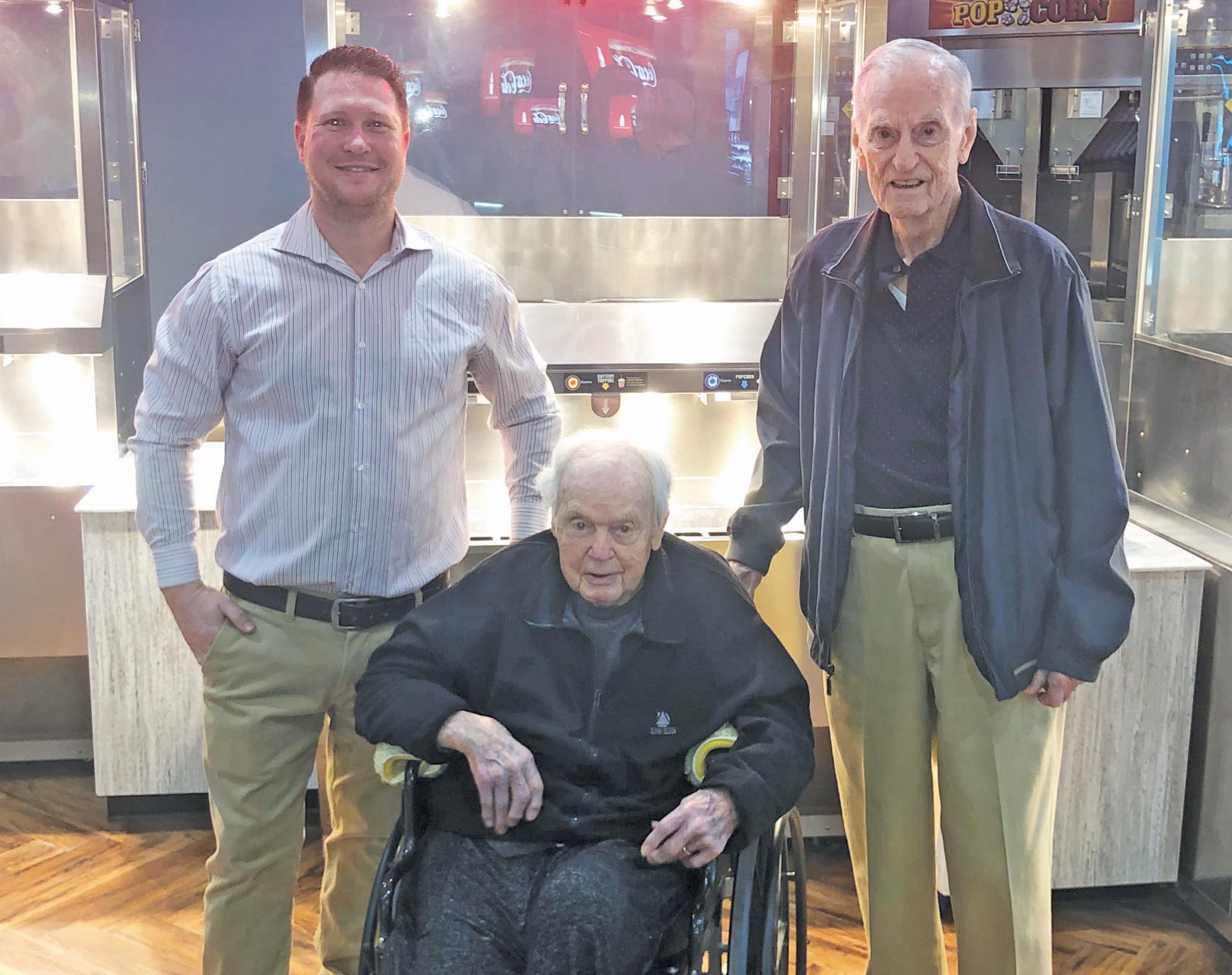 Passing of the torch for Edmond’s movie theater. The Snell family offered a pre-opening tour to the previous owner of the movie theater, the Freeman family. The Freeman’s were impressed with all the fantastic improvements and changes to the movie theater they built in 1987. ICON Cinema is the new name for the theater. From left, Edwin Snell, Tom Freeman and John Freeman.