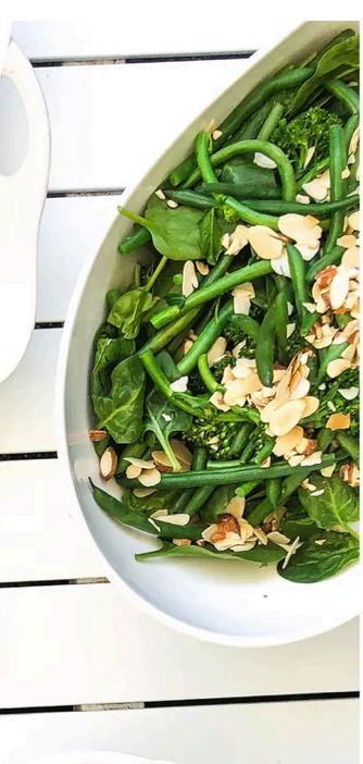 Green beans, broccolini & baby spinach tossed lightly in butter, toasted slivered almonds