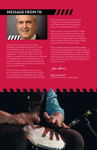 MESSAGEFROM TD from Canada and around the world. Framed by the unique ambience of the Prairies, Edmonton is the perfect place to experience great music.