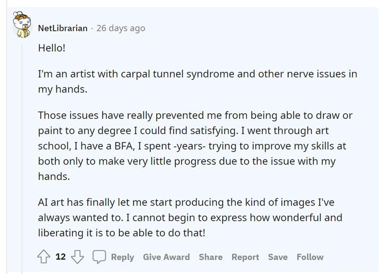 It’s great that this is getting new people into art, just like the inventions of photography or Photoshop did. It’s also great that it is especially useful for artists or aspiring artists who experience handicaps like impaired motor functions.