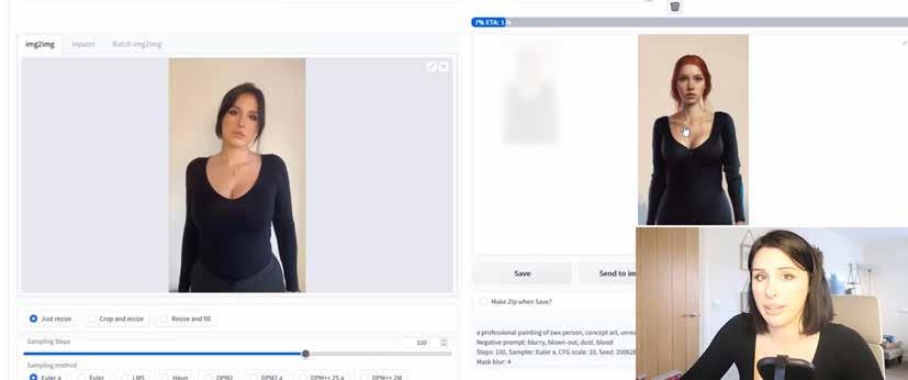 gangs vorgestellten Modellen. - Beim Betrachten der Bilder möchte bitte berücksichtigt werden, dass es mir aufgrund eines recht alten Computers mit lediglich schwacher Rechenleistung leider nicht möglich war, eine große Anzahl an Bildern generieren zu lassen, aus denen ich hätte auswählen können. Das erwähne ich nicht, um die ggf. mangelhafte Qualität der gezeigten Bilder zu entschuldigen. Mir ging es maßgeblich um das technische Experiment, mit dessen Ausgang ich persönlich sehr zufrieden bin. Nein, ich erwähne es, um interessierte Kreative mit vermutlich neueren Computermodellen oder dem nötigen Kleingelt für das Anmieten einer Cloud-GPU (*was tatsächlich gar nicht so teuer ist) darauf hinzuweisen, dass es ihnen mit Sicherheit möglich sein wird, sehr viel schneller einen weit größeren Bilderpool generieren zu lassen, aus dem sich dann auswählen lässt.